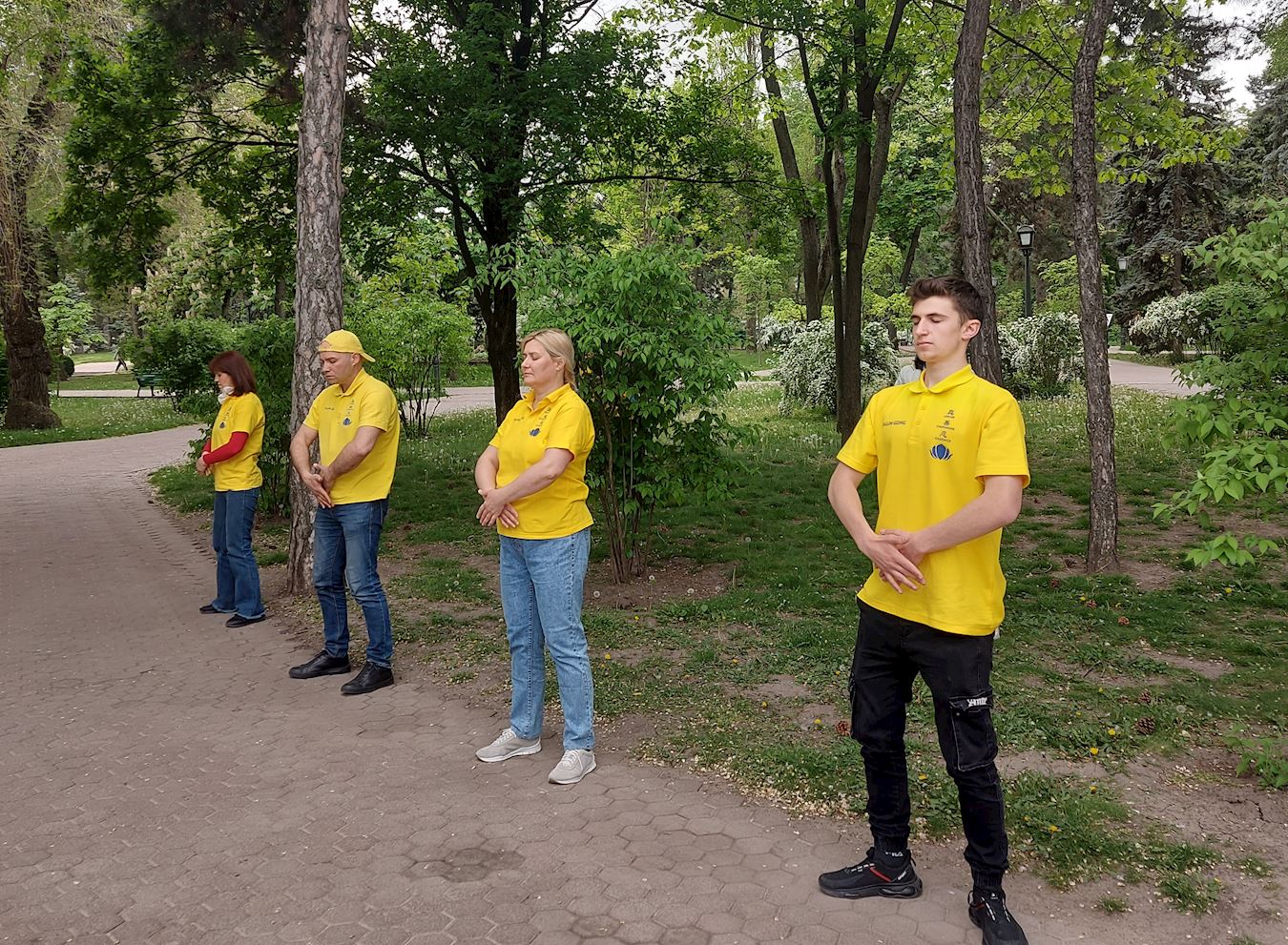 ![]() 图1:法轮功学员在基希讷乌的斯特凡大公公园炼功,向人们传播法轮功的美好及真相。 |