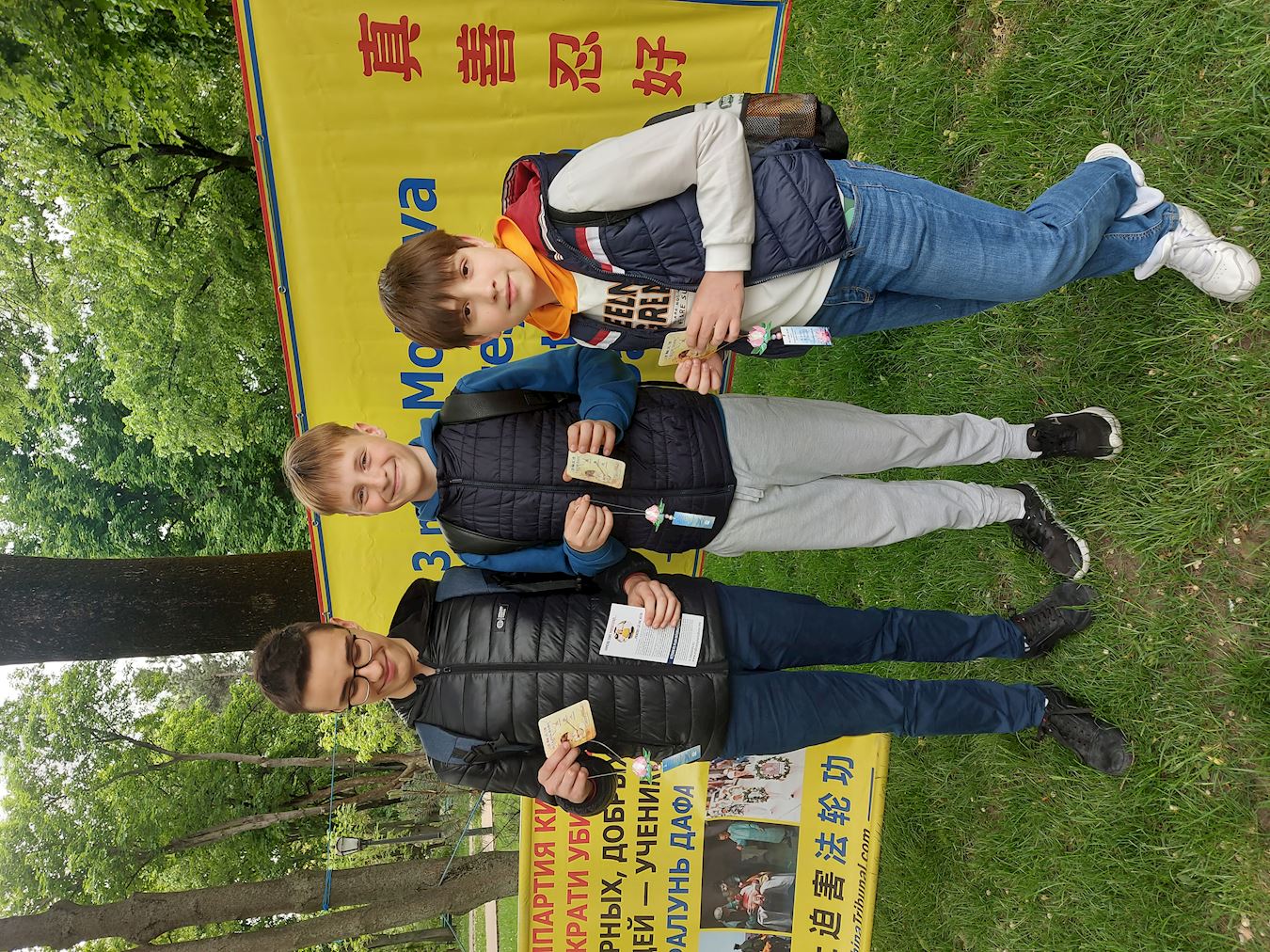 三个小男孩埃尔文(Ervin)、戴米安(Damian)和波格丹(Bogdan)也来到展位前,他们接受了学员们赠送的小莲花。