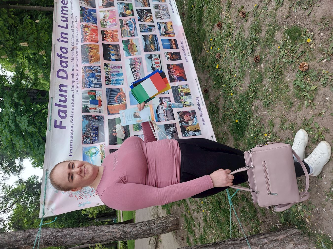 一位名叫多东·杜米特里萨(Dodon Dumitrița)的年轻女士来到学员跟前,因为她以前听说过法轮大法,所以对学炼功法很感兴趣。