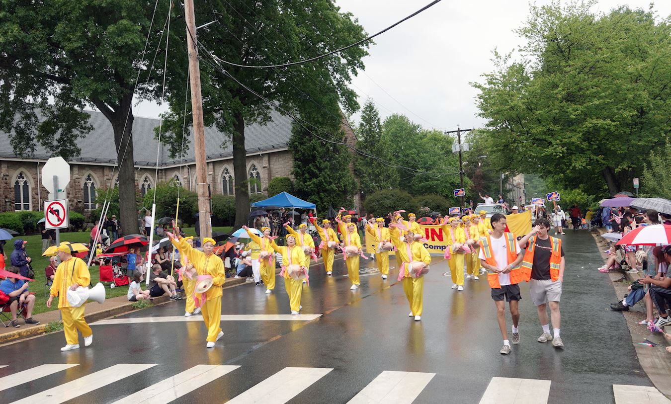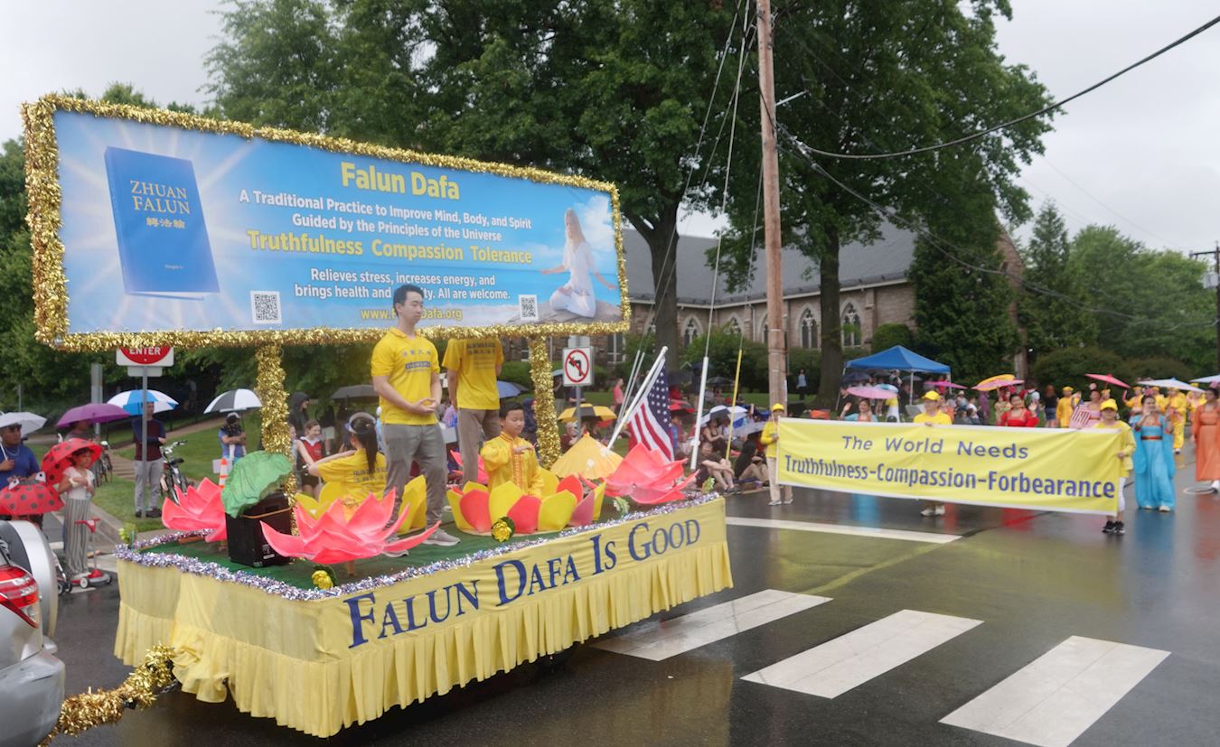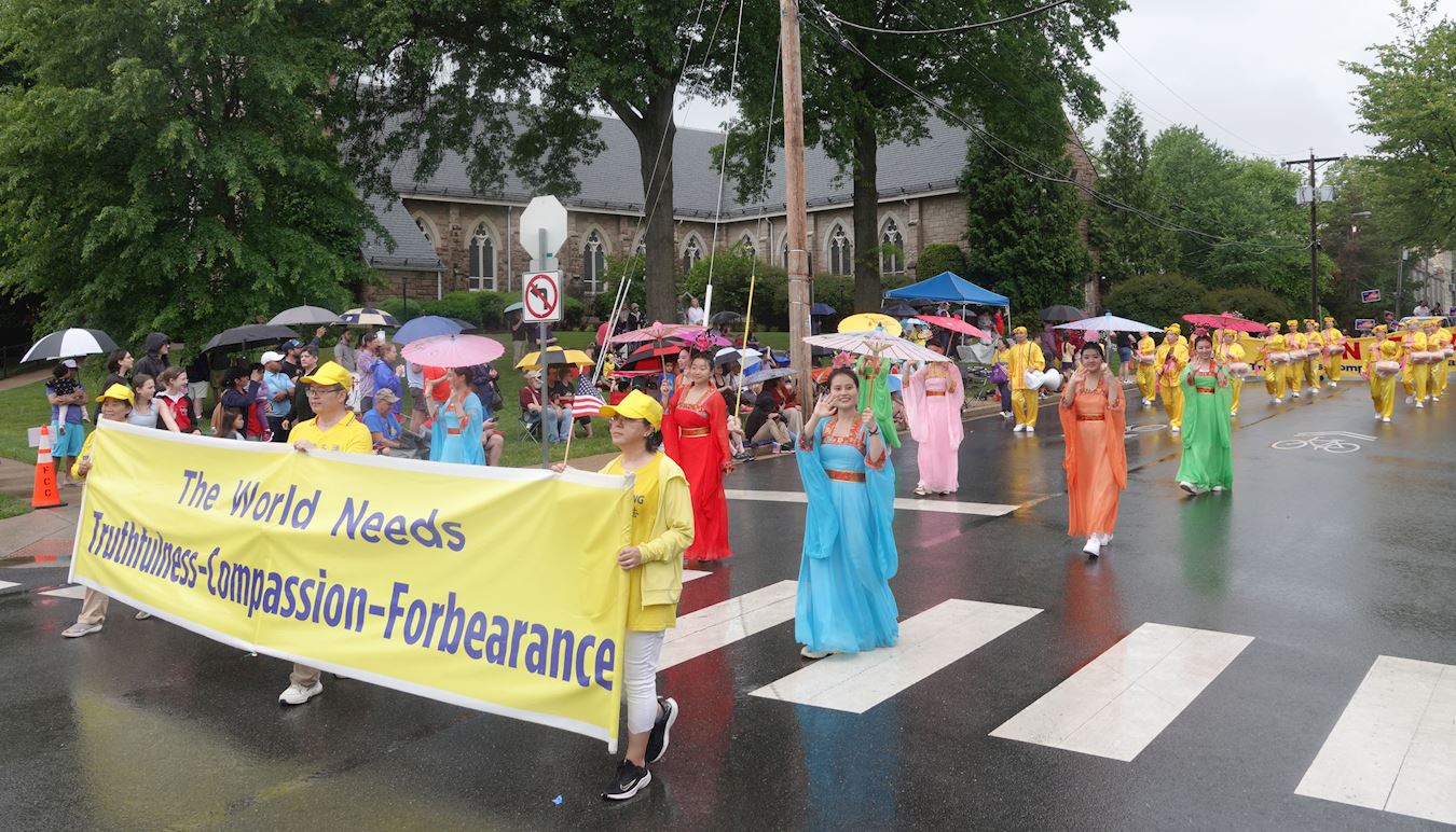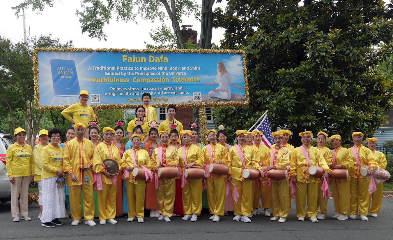 二零二三年五月二十九日下午,大华府地区部分法轮功学员参加了华盛顿近郊弗吉尼亚州瀑布教堂市(Falls Church)的阵亡将士纪念日游行。