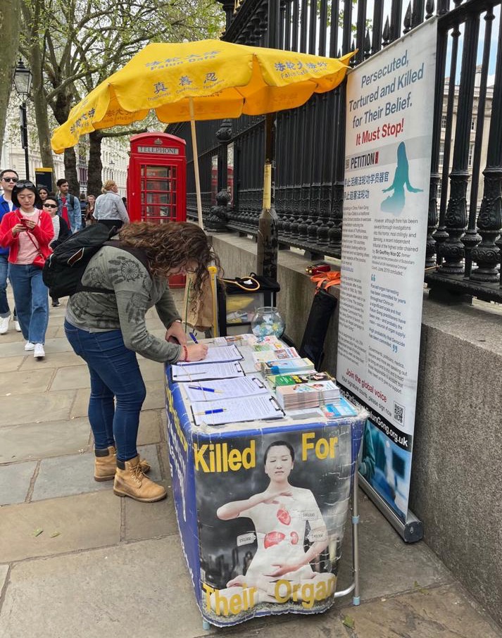 一次,法轮功学员在发传单,一位华人女士听到是法轮功传单,就接了过去。他们一行共三人,是从美国来的,早年就移居美国了。女士说:“我支持你们。在所有(跟中共)抗争的群体中,我最佩服法轮功,这么多年的坚持。我是学医的,前些年,你们在美国街头做‘中共活摘法轮功学员器官’的演示,我当时有疑问,不相信这是真的,虽然我知道共产党干了很多坏事,但怎么能干出这种事情来呢,但是后来随着各种真相在网络上披露,我相信了。”