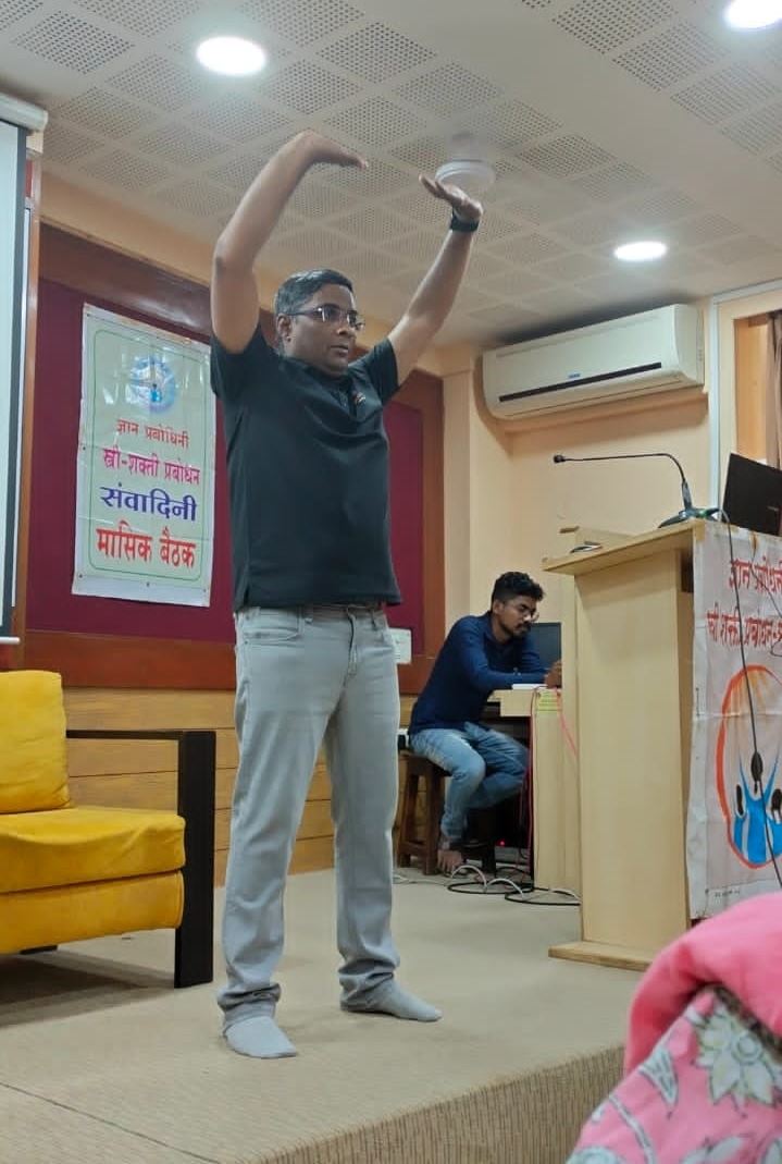 一名当地学员在学校礼堂举办了一个半小时的弘法活动,他们演示法轮大法的全部五套功法。其中一位学员阿南德·波菲尔(Anand Pophale)是来自浦那(Pune)的IT专业人士。他用幻灯放映(PPT)演示文稿,详细介绍了法轮大法修炼功法及其核心原则真、善、忍,并讲述了中共是如何迫害这一精神信仰的。