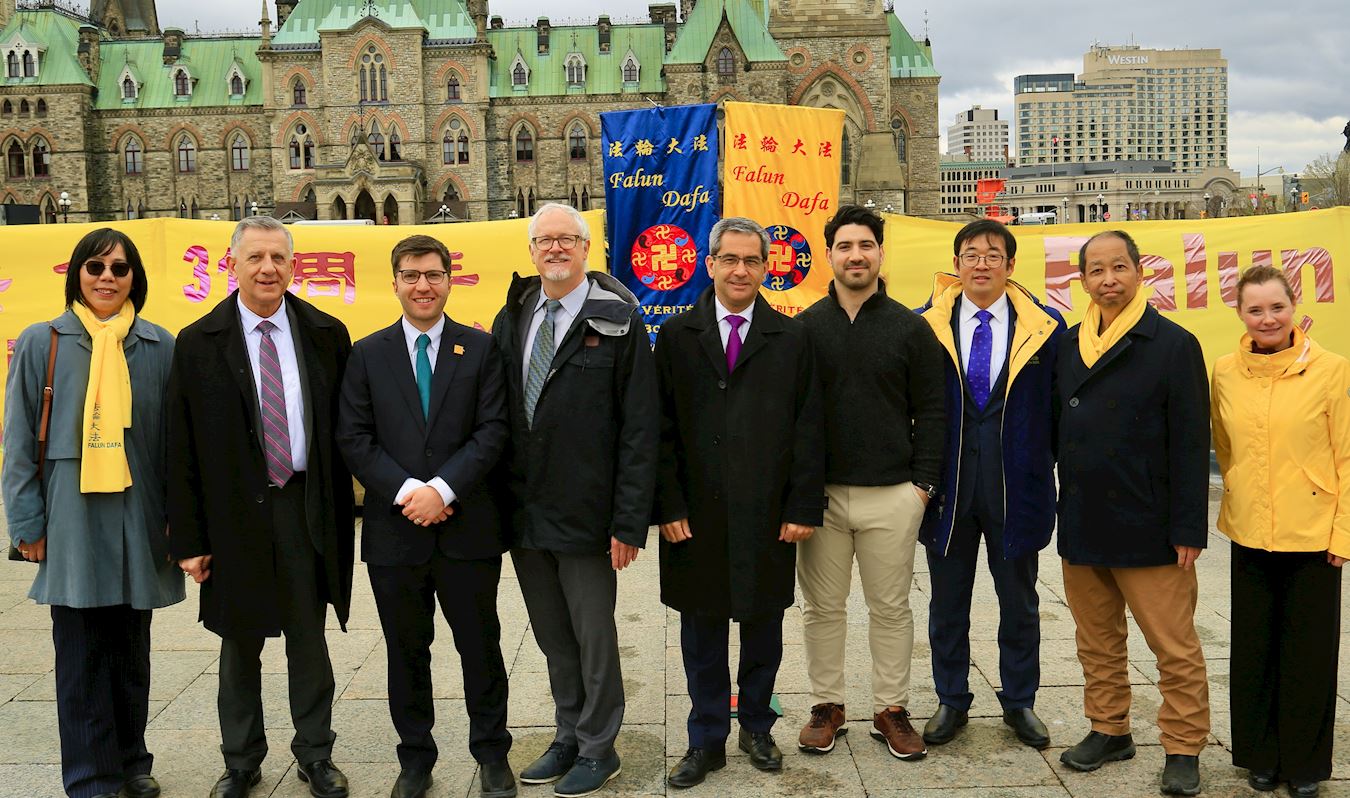 当天,十四位国会议员和一位议员代表,与来自加拿大东部的部分法轮功学员,汇聚在首都渥太华国会山前,庆祝法轮大法弘传三十一周年。现场同庆法轮大法日的议员有朱迪·思格若(Judy Sgro)、加内特·吉尼斯(Garnett Genuis)、斯考特·瑞德(Scott Reid)、詹姆斯·贝赞(James Bezan)、泰德·福克(Ted Falk)、玛丽莲·格拉杜(Marilyn Gladu)、汤姆·克米奇(Tom Kmiec)、理查德·马特尔(Richard Martel)、柯林·嘉莉(Colin Carrie)、阿诺德·威尔森(Arnold Viersen)、皮埃尔·保罗-胡斯( Pierre Paul-Hus )、马克·道尔顿(Marc Dalton)、雷切尔·班达妍(Rachel Bendayan)和丹·梅斯(Dan Muys),麦可·库珀(Michael Cooper)议员也派代表到现场支持。