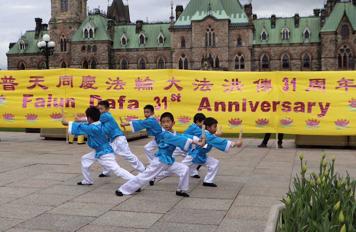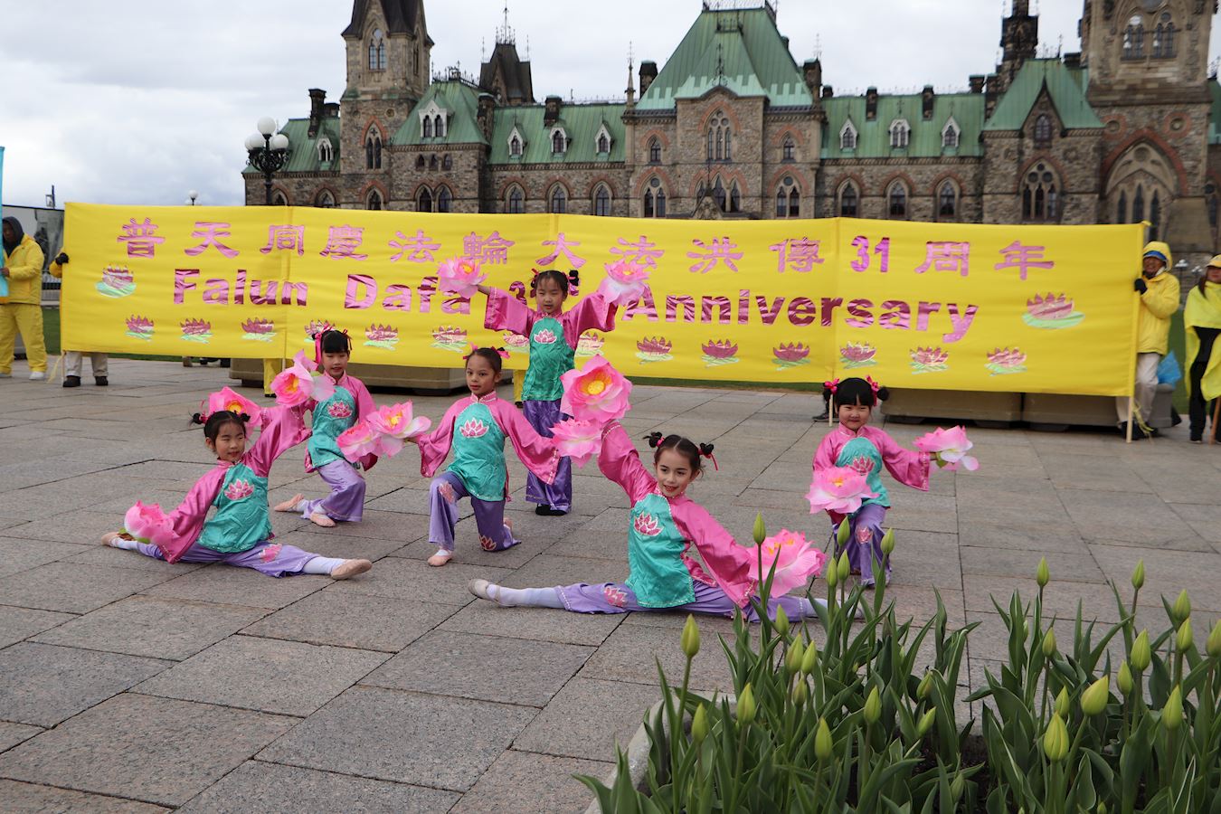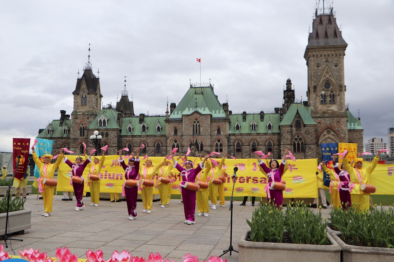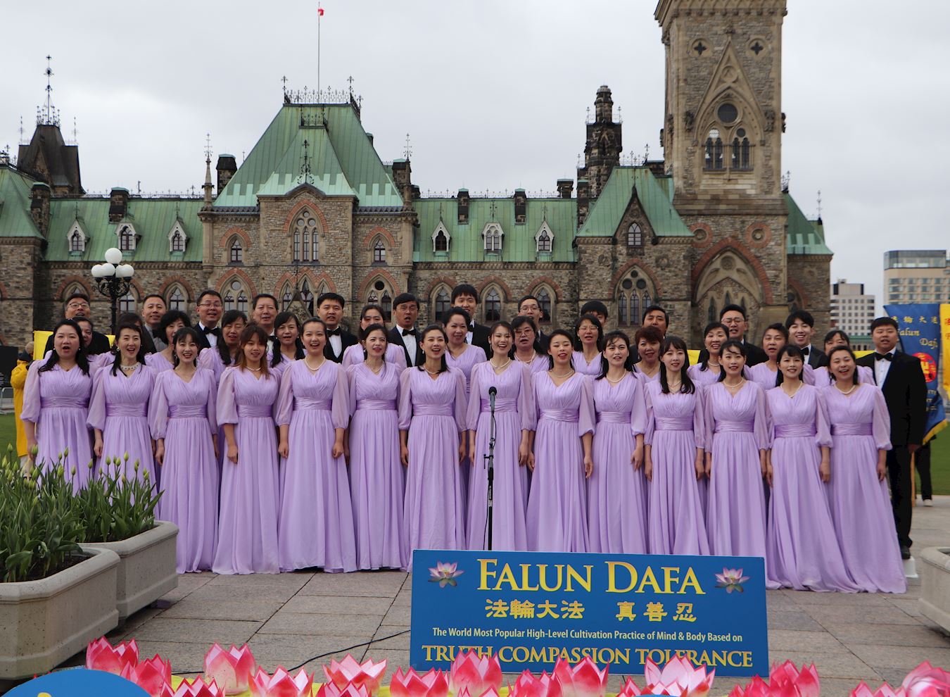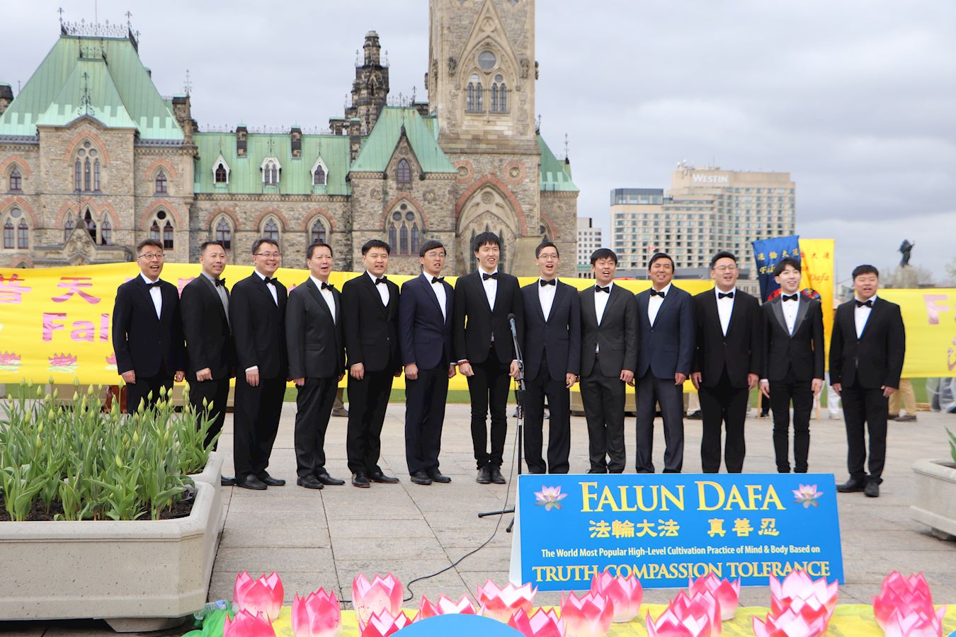![]() 图2~7:二零二三年五月三日加拿大东部的部份法轮功学员集聚在首都渥太华的国会山前,载歌载舞庆祝世界法轮大法日的来临。 |