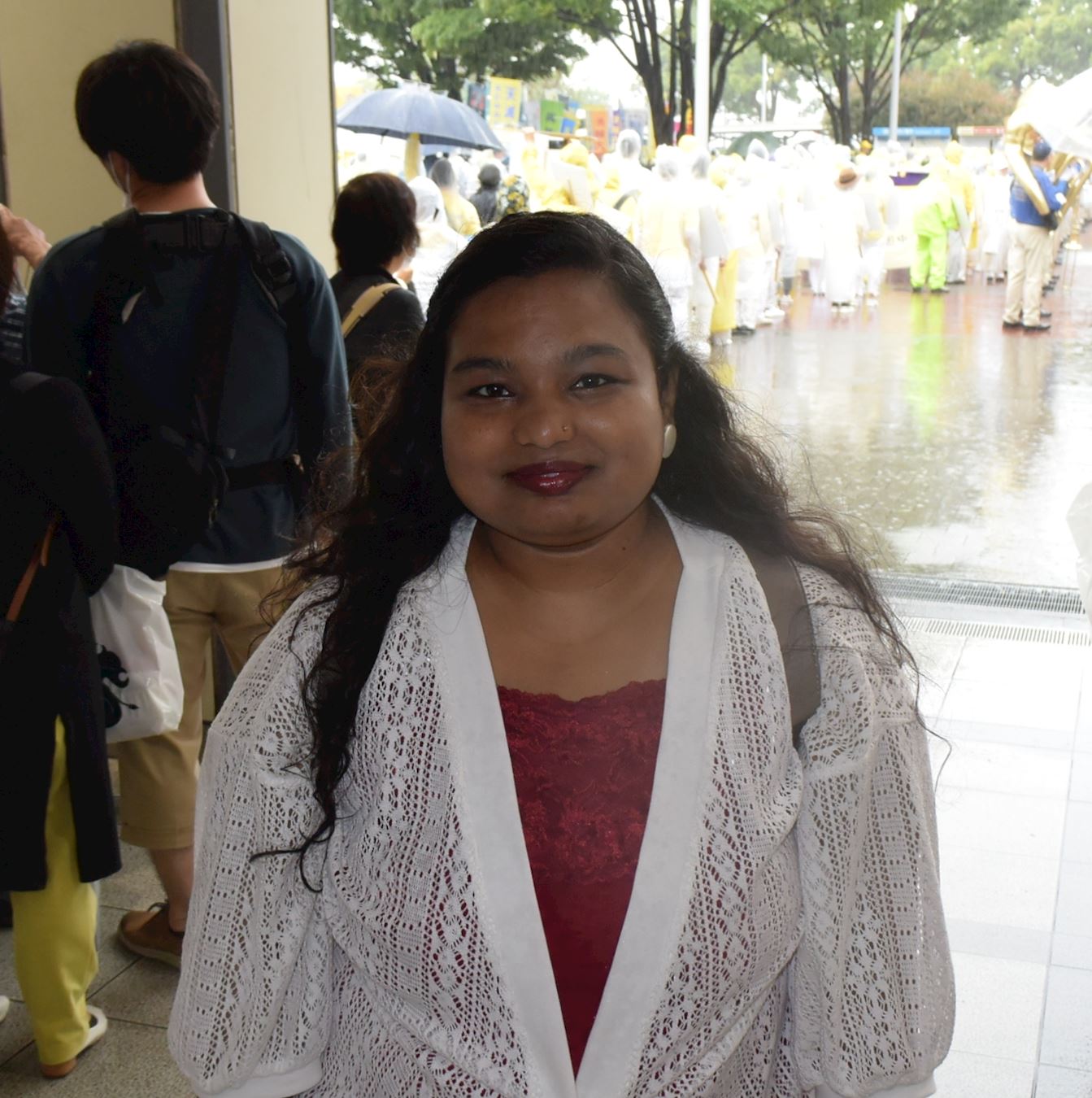 印度学员Pronladi Nondagave女士两个月前开始学炼法轮功。她表示自己不再抱着对别人是好是坏的偏见及区别之心,变得平和更加稳重了。