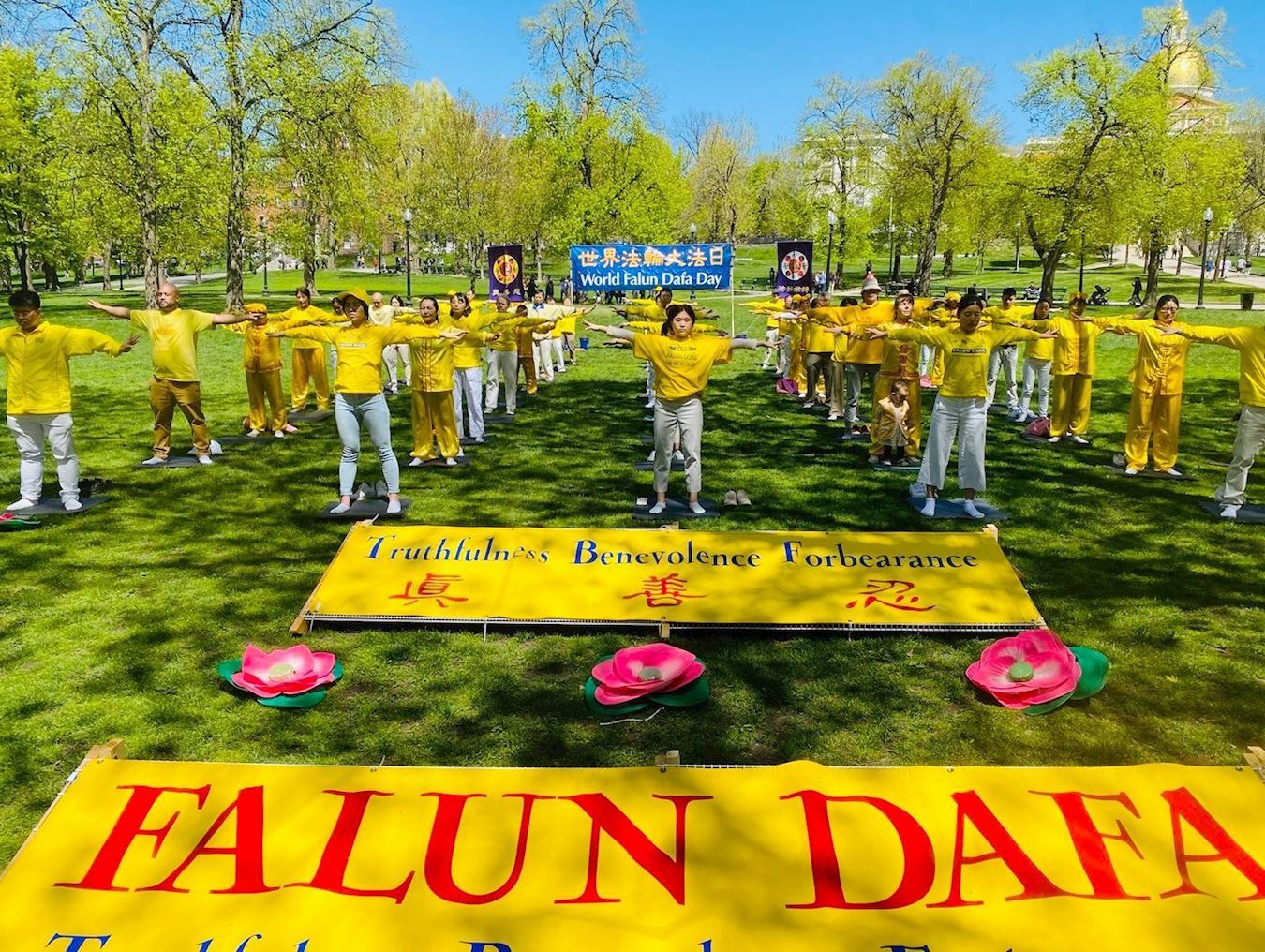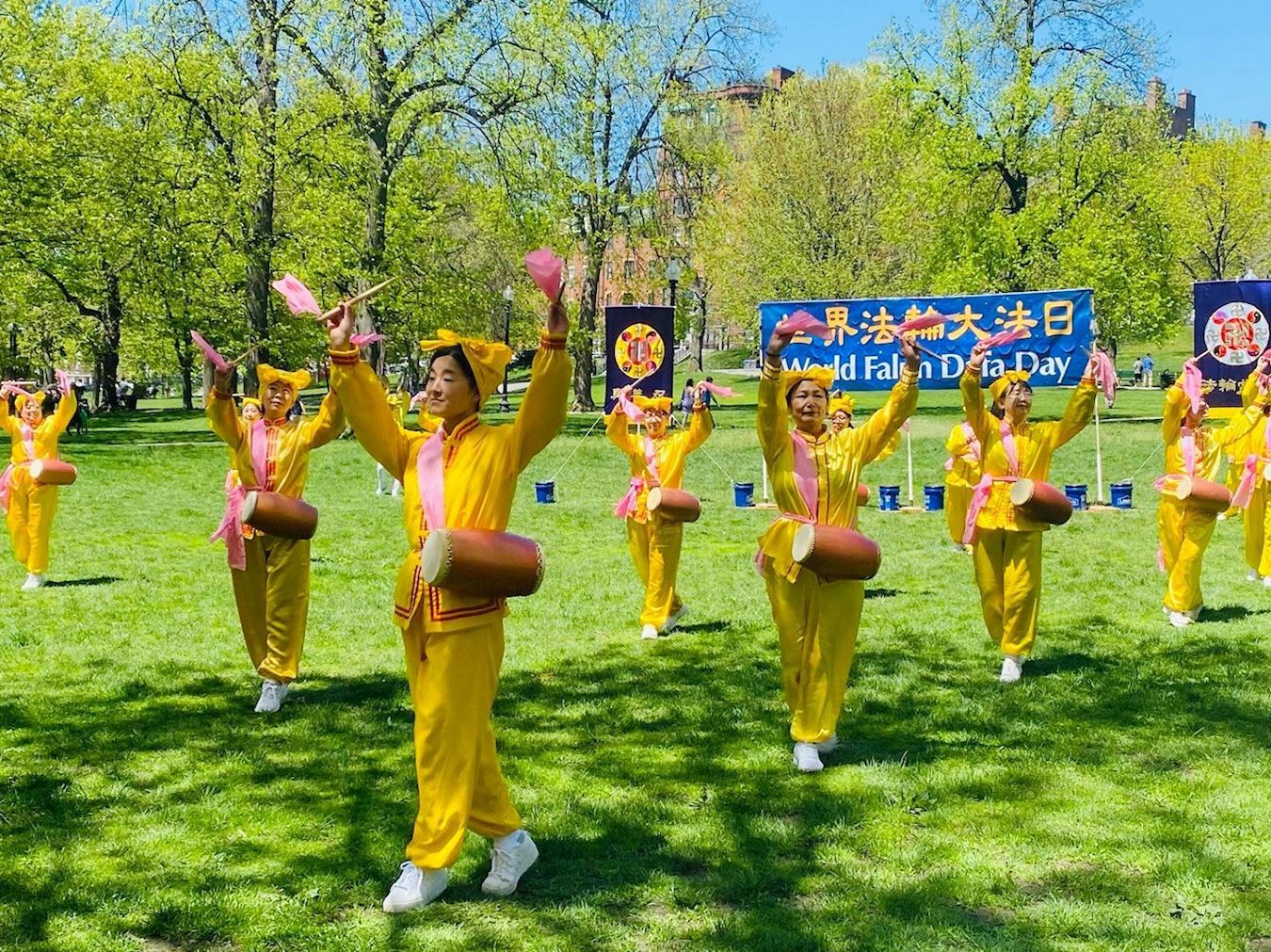 ![]() 图1~2:二零二三年五月六日,新英格兰法轮功学员聚集在波士顿公园,以集体炼功、表演腰鼓队等形式,庆祝大法弘传三十一周年。 |