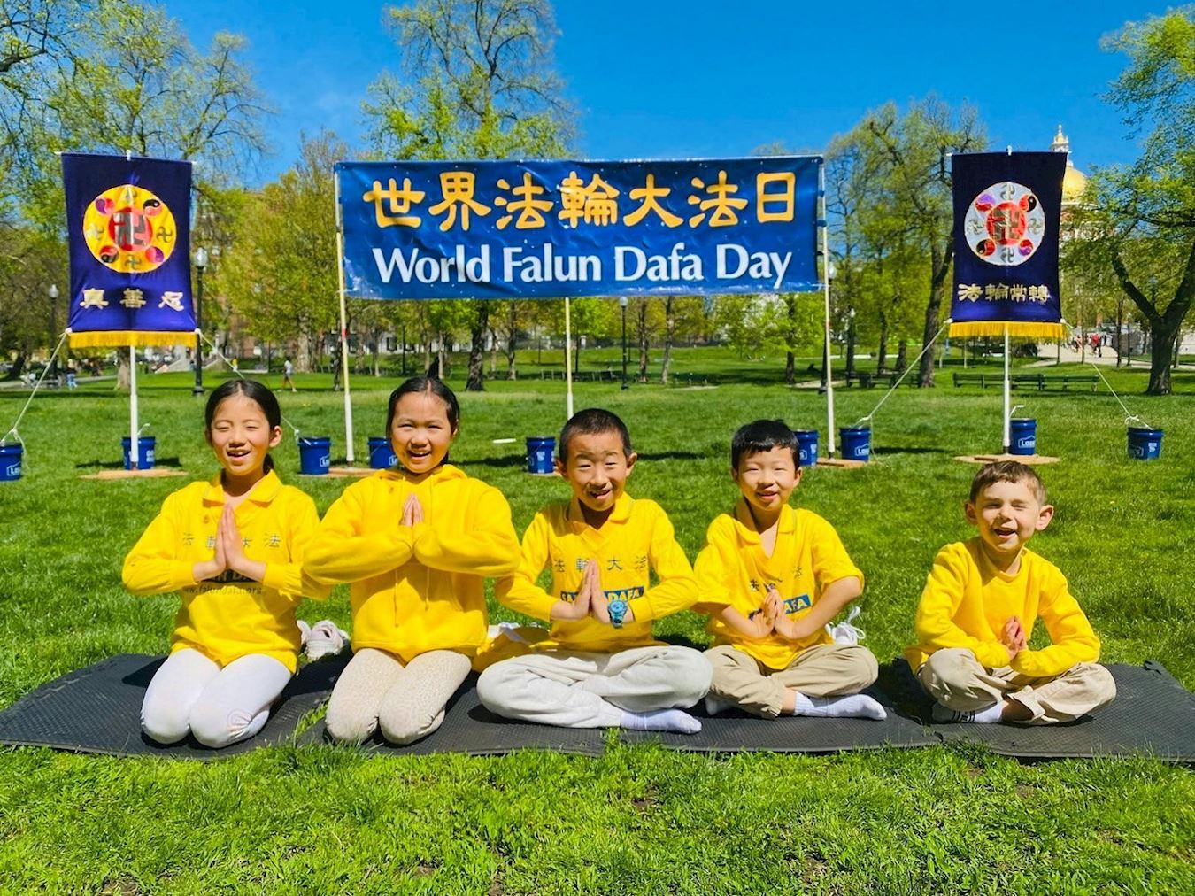 ![]() 图4:大法小弟子也参加了当天庆祝大法弘传三十一周年的活动。他们双手合十恭贺法轮功创始人李洪志先生华诞。 |