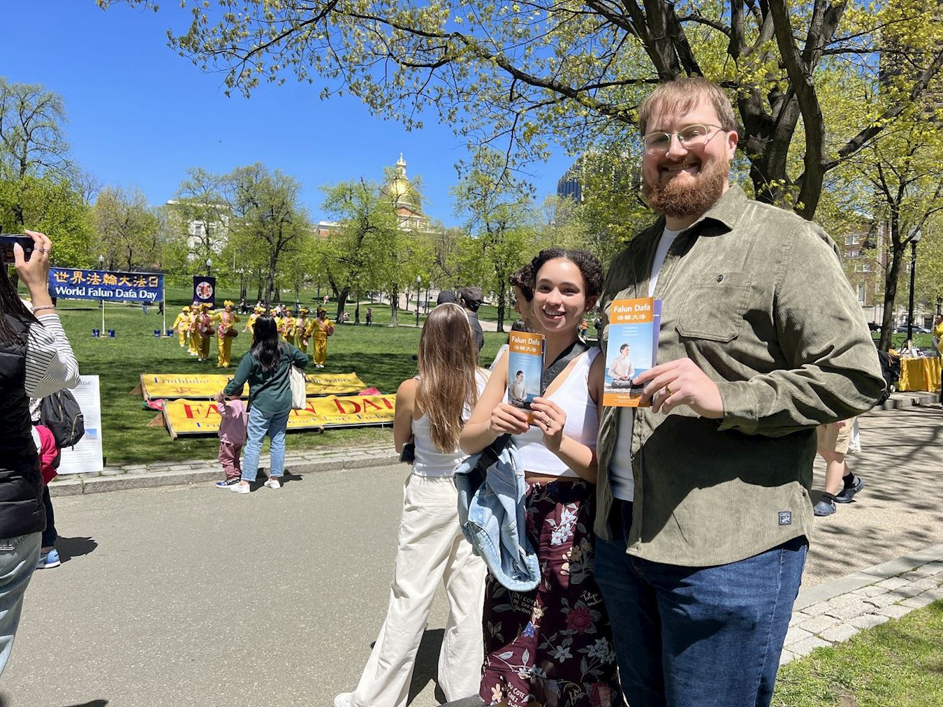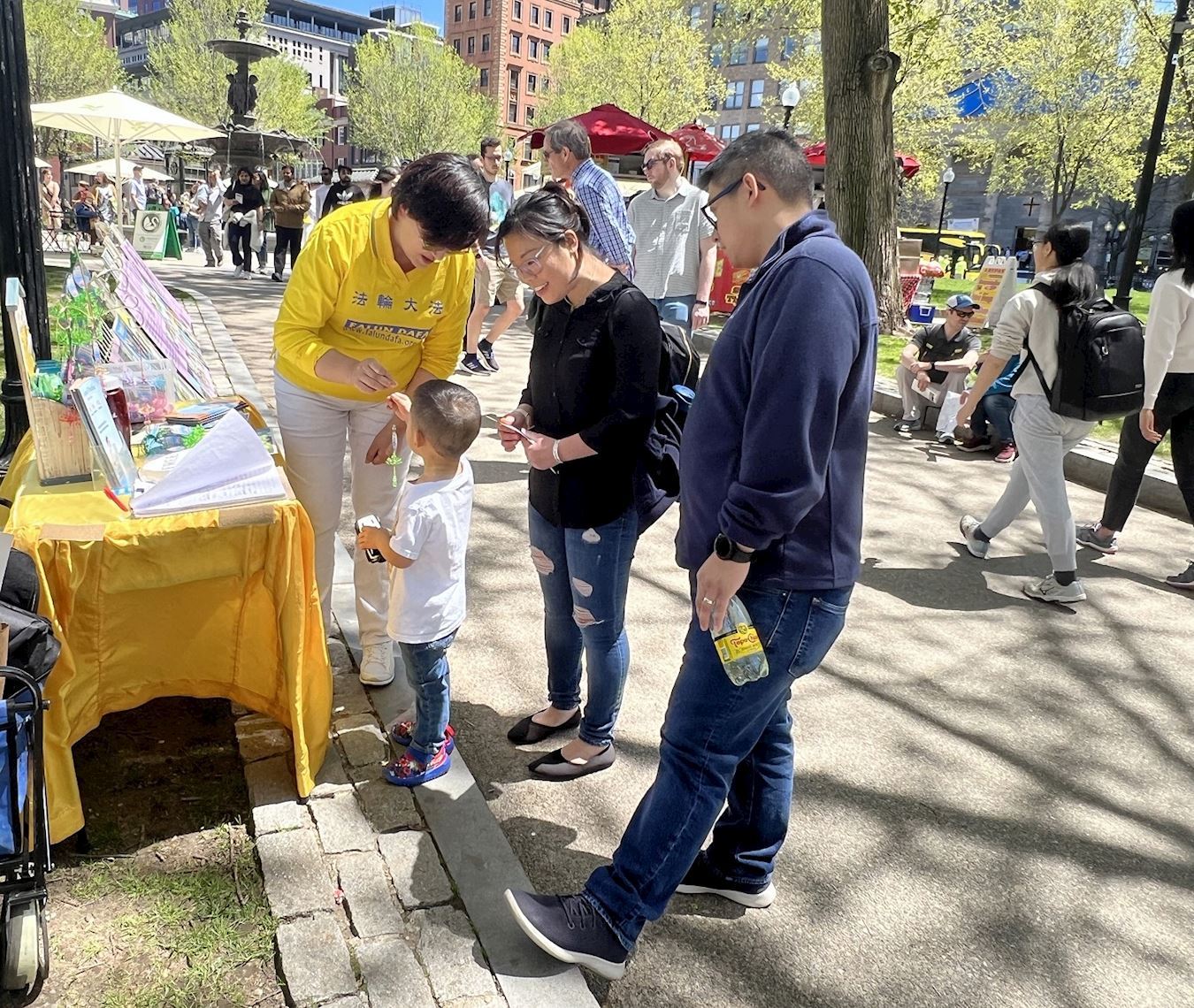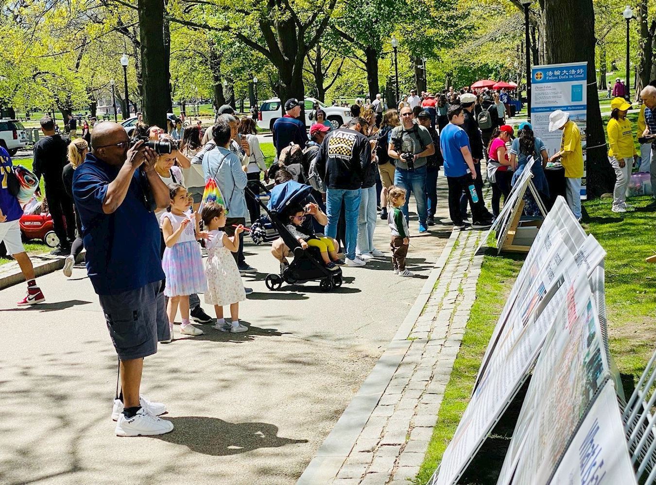 暮春的波士顿公园阳光明媚,惠风和畅,一早就挤满了周末踏青的人。熙熙攘攘的人群从活动现场经过,络绎不绝。悠扬的炼功音乐和学员们整齐划一的动作,让他们眼前一亮,感到一种祥和宁静的能量场。吸引市民及游客驻足观看,有的拿起手机拍照。