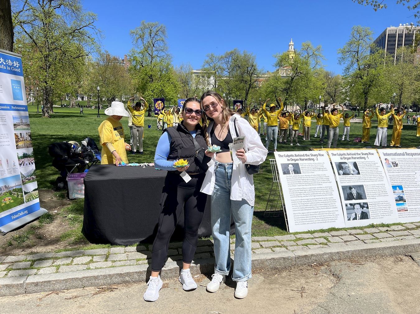 她们静静地听着学员的介绍,凯蒂拿着真相传单看了很久,她说:“我们很庆幸拿了传单。因为我们也想回去学。每个人都看起来那么平和快乐。”莱利点头赞同说:“我们一定会去试着学。”