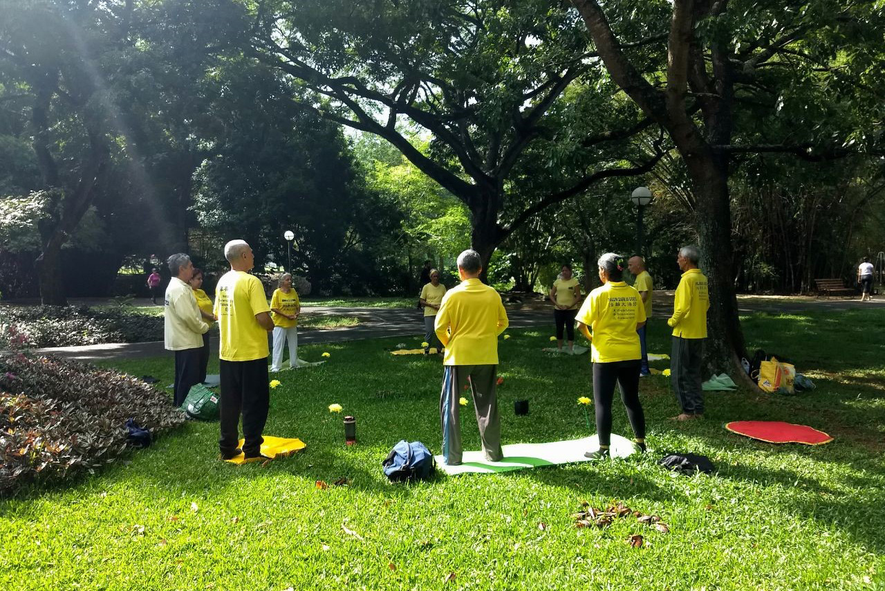 三天期间,委内瑞拉学员集体学法、讲真相、发正念并交流修炼心得。他们在格拉希波里塔(Negra Hipolita)公园炼功。通常每个周日上午,法轮功学员都会在这个公园里集体炼功。