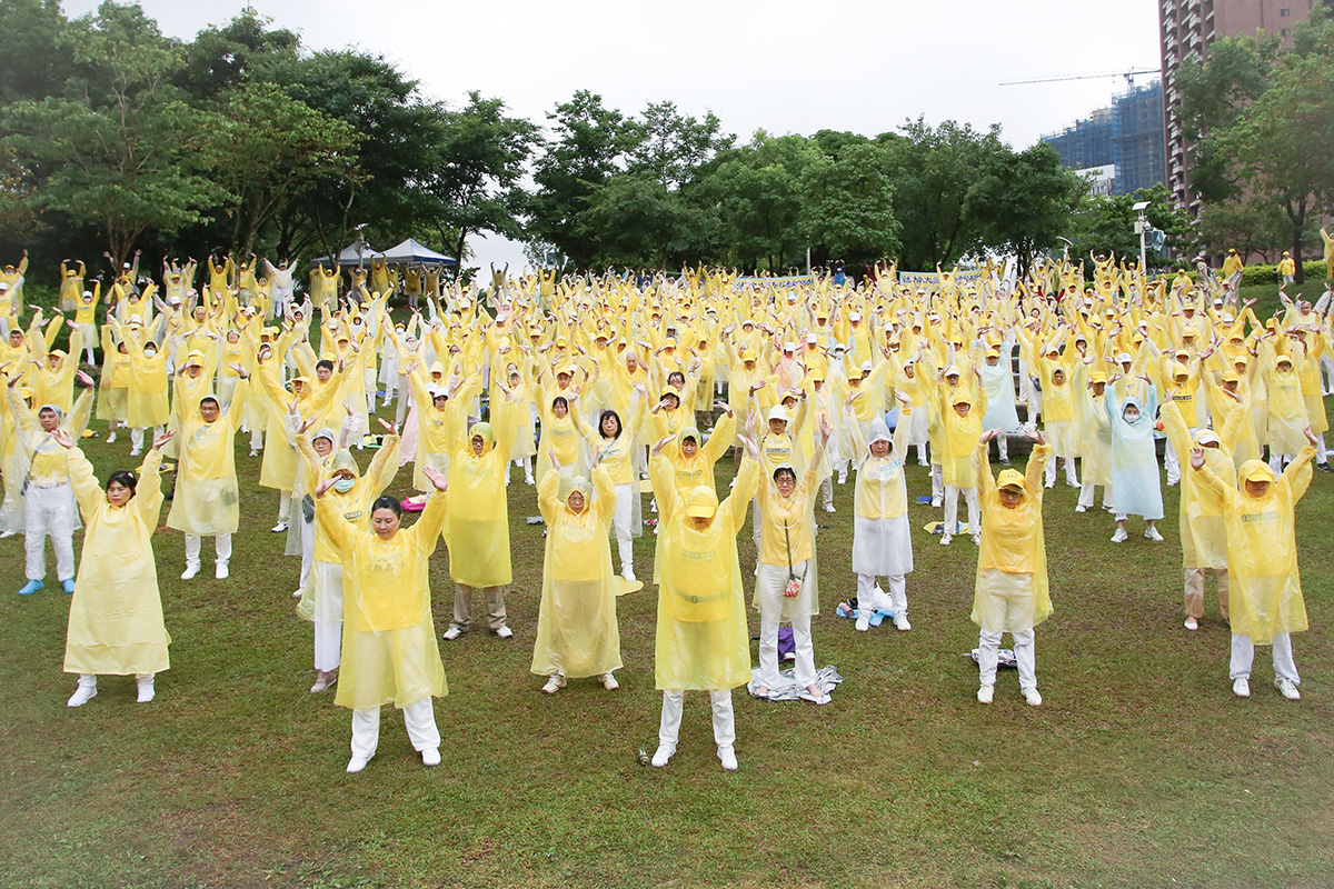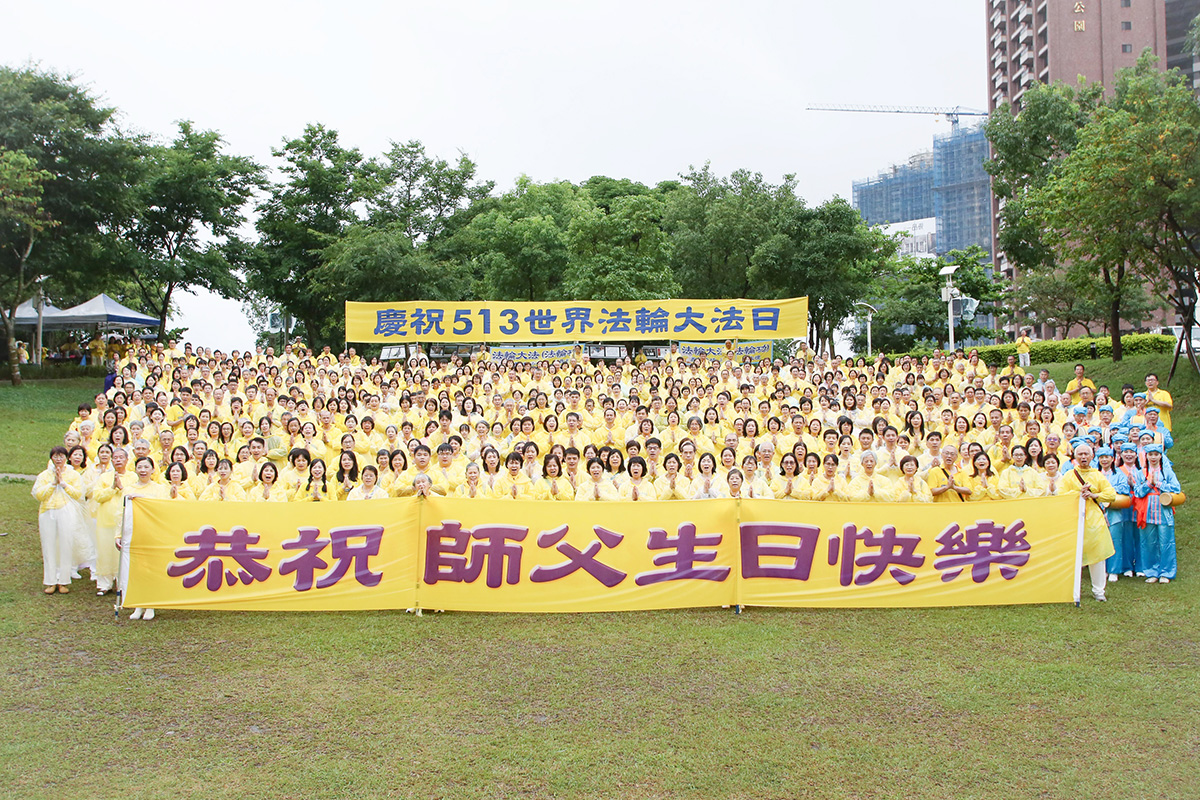![]() 图1:二零二三年五月七日,桃竹苗的法轮功学员在桃园市风禾公园恭祝师尊生日快乐。 |