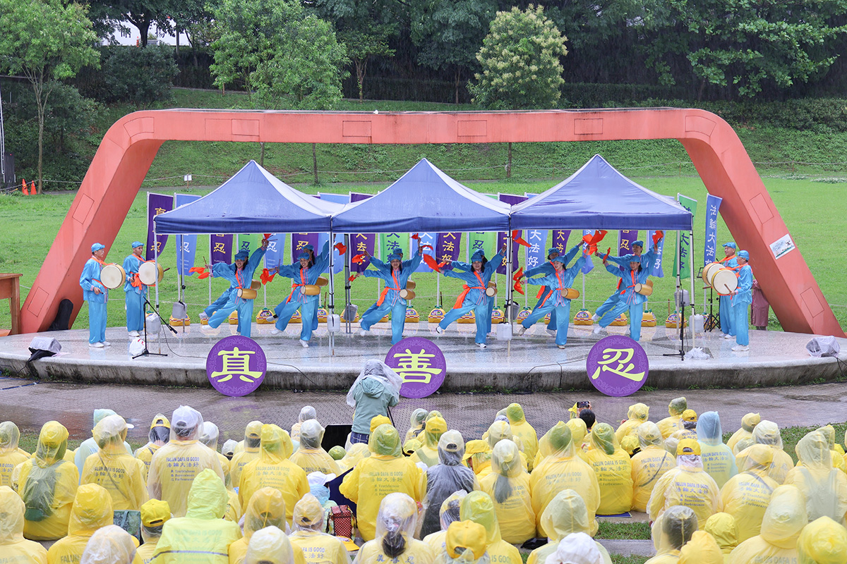 当天活动中,学员们通过集体炼功,多项表演包括腰鼓队、音乐演奏、大法小弟子背诵诗词,以及真相图片展,向世人展示法轮大法的美好。他们齐声恭祝师尊生日快乐,表达对法轮功创始人李洪志师父无尽的感恩。