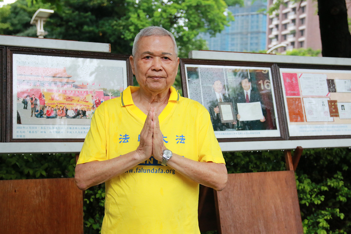 新竹一所大学退休教授罗吉彦,高龄八十岁,是刚得法满两个月的新学员。两个多月前偶然看到一则有关法轮大法的网络视频,内心莫名强烈震撼,立刻到书店买了《转法轮》,用两天半看完,一边看一边落泪,感到这书太珍贵了。并随即找到炼功点炼功,至今一天没落。得法后,他天天认真学法,至今已看完二十几本大法书。
