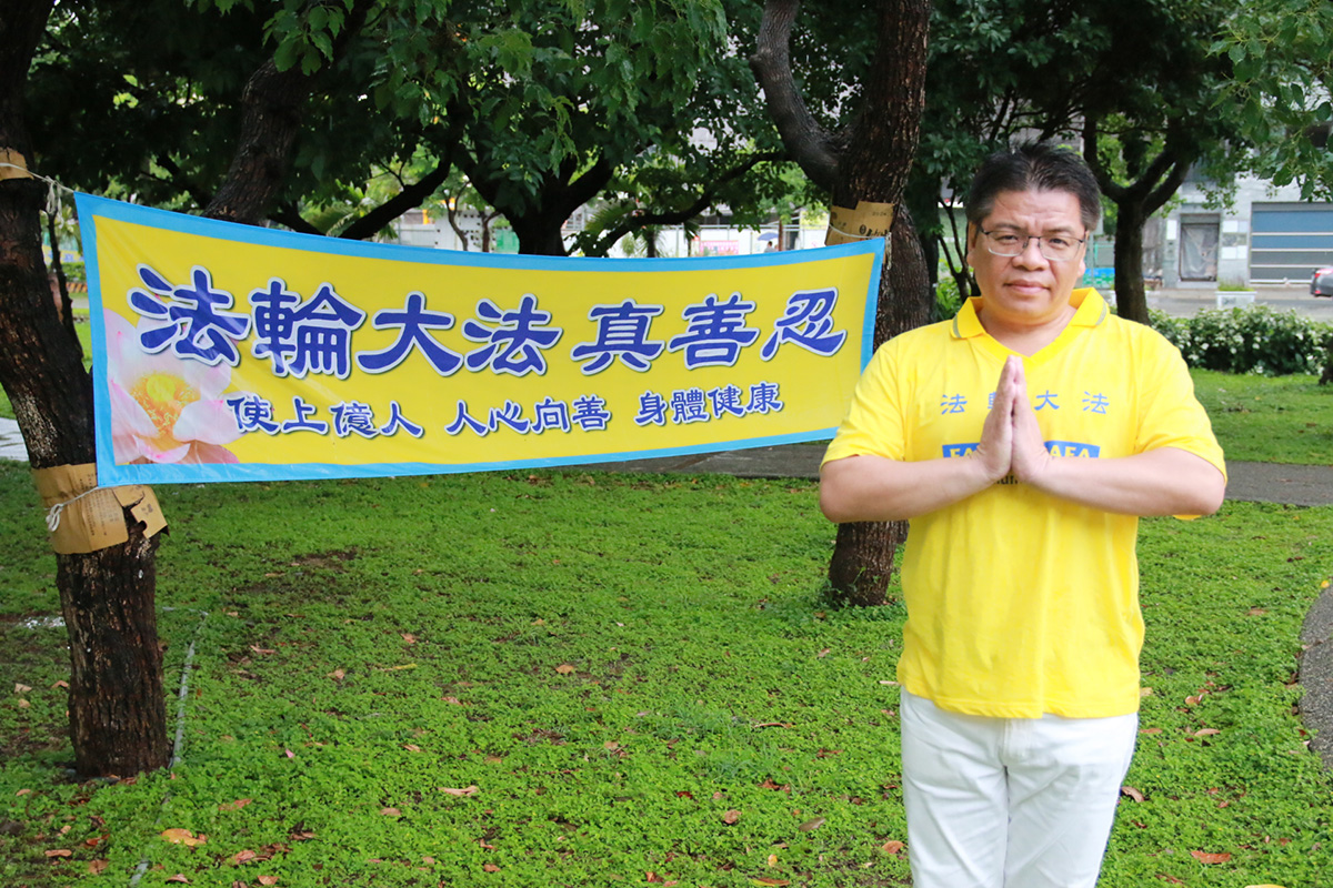 苗栗的郑进富,国中就想出家,十几年前就有朋友拿《转法轮》给他看,但当时看十几页就没再看下去,这一停就是十几年。二零二一年五月一日, 他上了九天的学法教功班,终于在年过半百后,正式走入修炼。