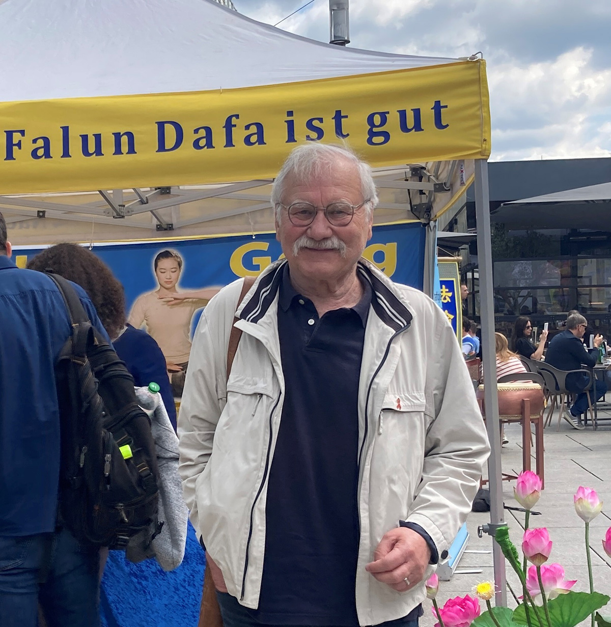 ![]() 图11:退休社会学家哈罗德·拜克(Harald Becker)观看法轮大法日活动。 |