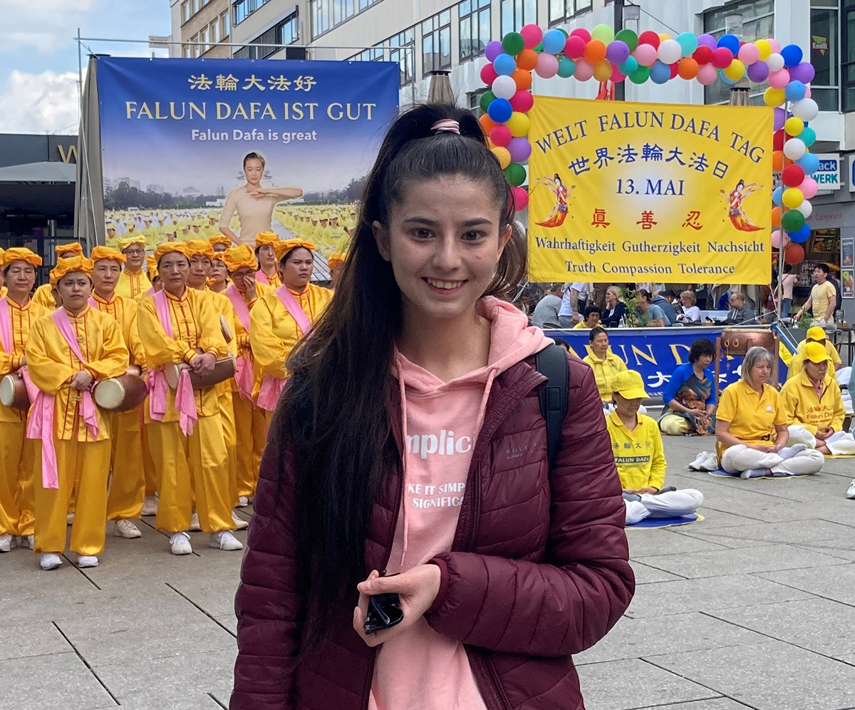 谈到法轮功真、善、忍的价值观,科琳娜说:“这个世界太需要真、善、忍了。可惜的是,我们渐渐在失去。如果每个人都来炼(法轮功),这个世界就不会有战争,每个人都像对待自己一样对待他人,就不会有人再为自己的利益去和别人争斗。”