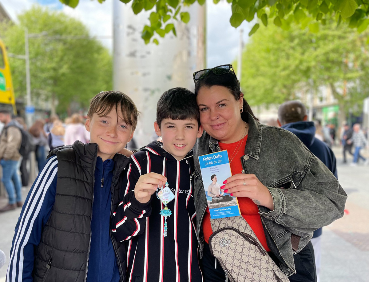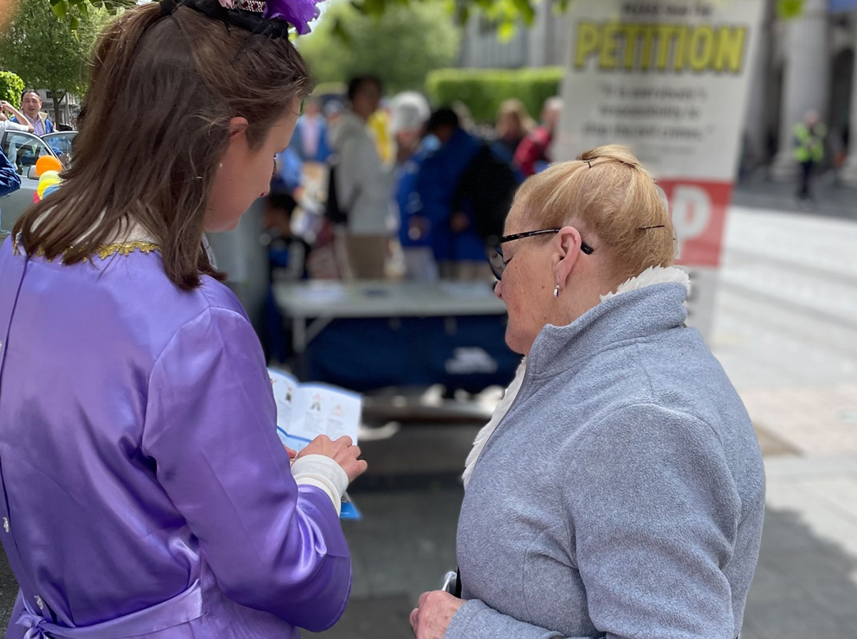 特蕾莎(Theresa)曾多次看到过学员在街头讲真相,她立即带着两个孩子过来签名支持。她说,当今社会的道德在下滑,共产主义的恶魔早已渗透进爱尔兰的各个领域,连学校也不能幸免,但却很少有人能清醒的认识到,这令她很担忧自己的孩子。