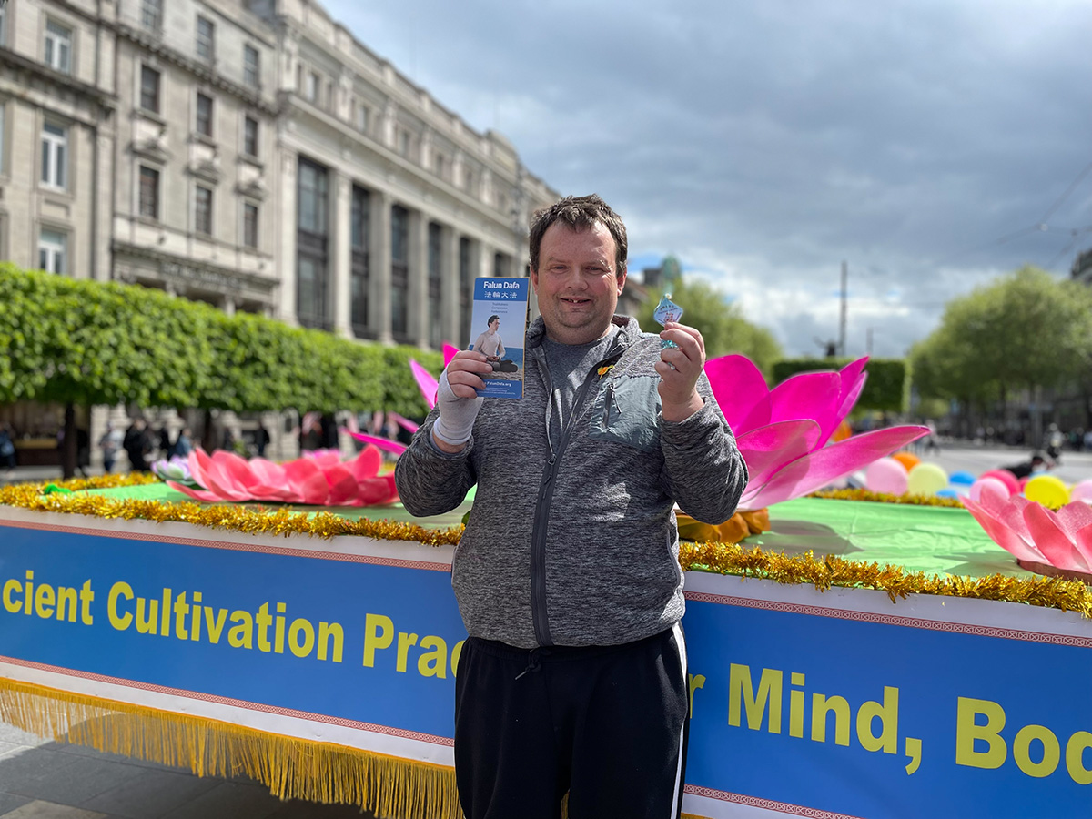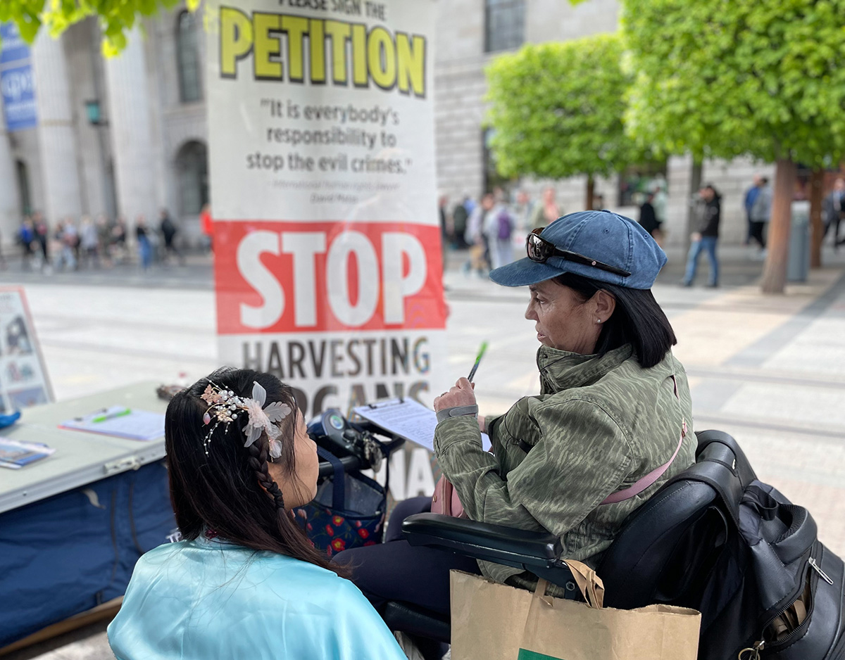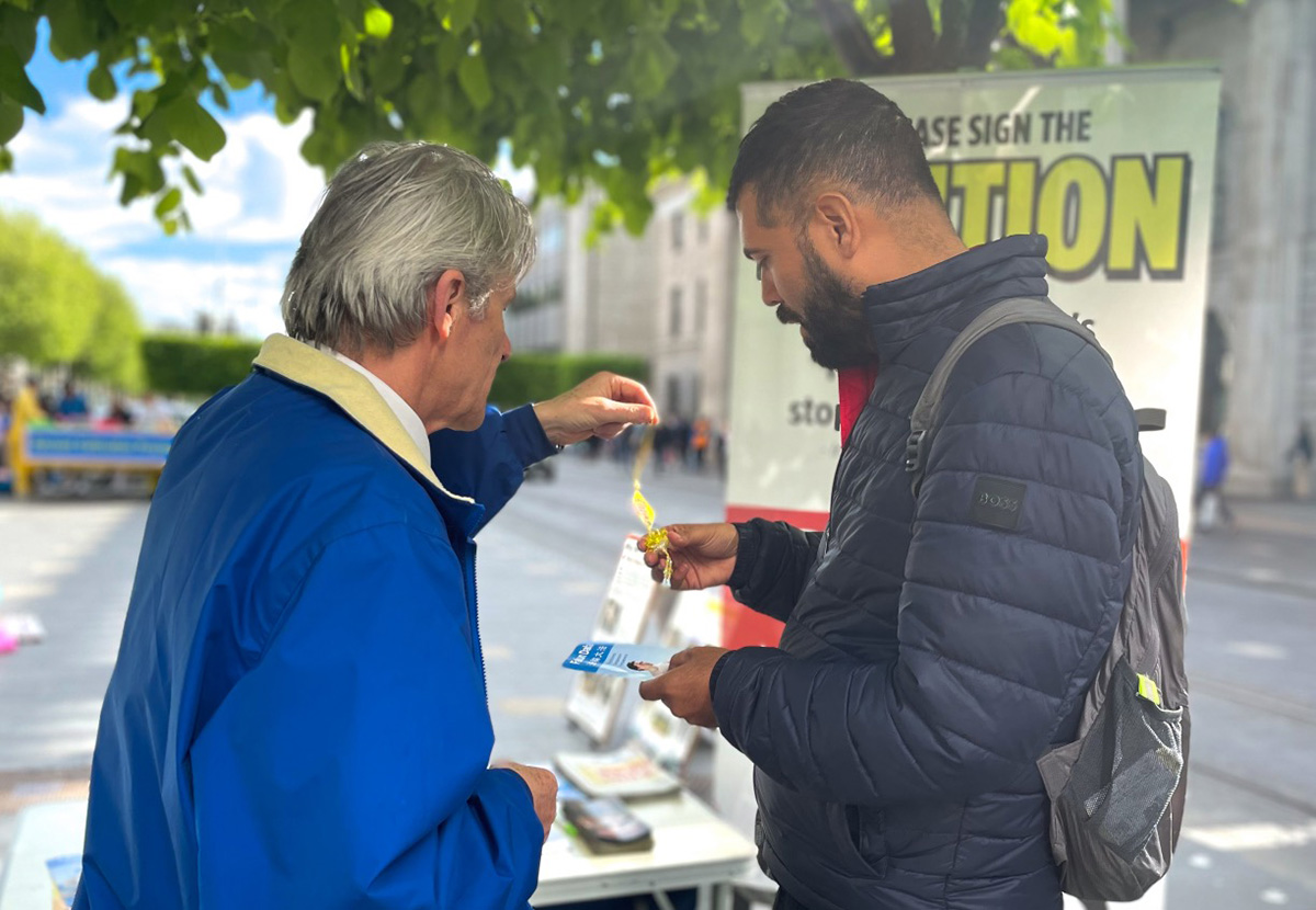 爱尔兰本地人艾伦(Allen)在签名支持法轮功反迫害后,说到:“我对这(中共的迫害)知道很多,我的太太是中国人,所以我很清楚,(迫害)是不对的。”
