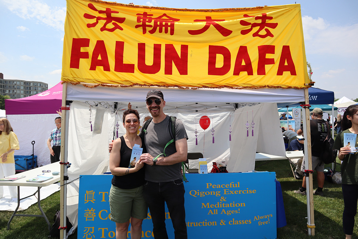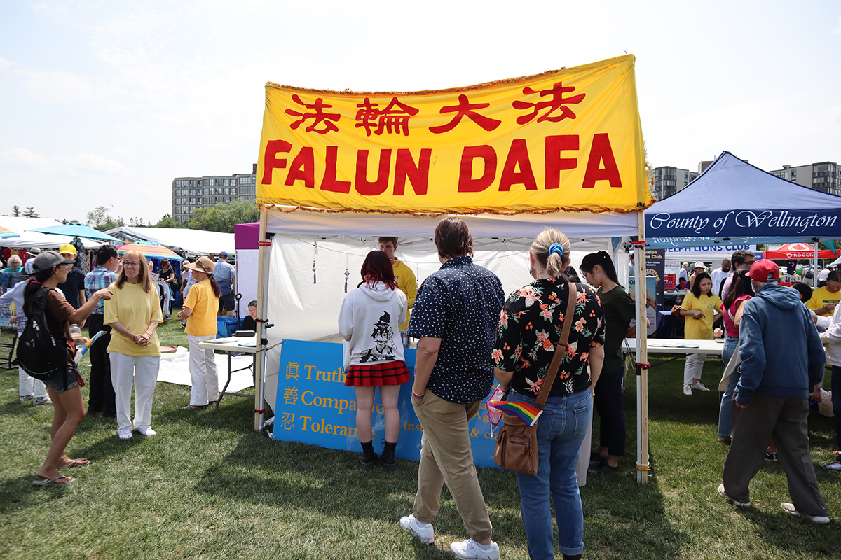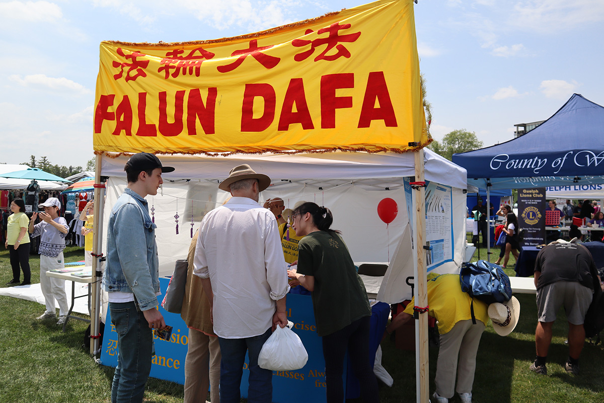 克里斯汀(Kristin)和先生一起来到了法轮大法展位前。几年前,他们从渥太华搬到了圭尔夫居住。克里斯汀在渥太华学过气功、太极。学员告诉她,法轮大法不只是练气功和祛病健身,而是提高生命境界的修炼方法。