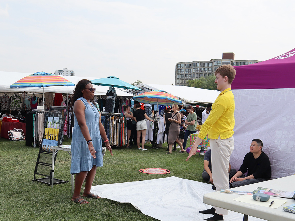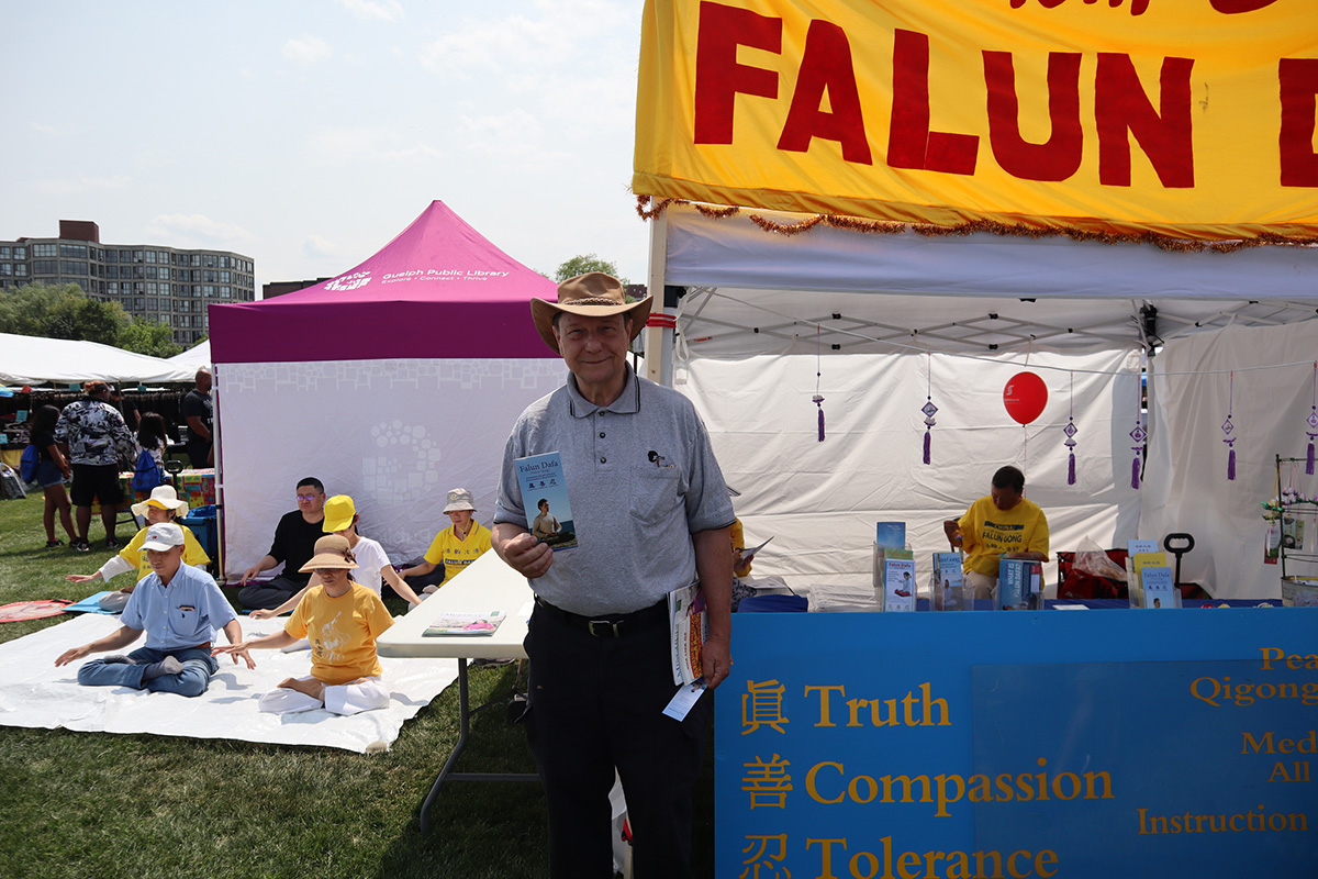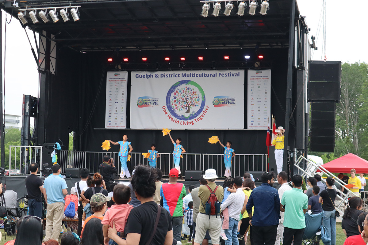 活动中,法轮大法展位上悠扬炼功音乐,以及舒缓的功法展示,吸引了民众驻足。不少当地居民留下了联系方式,希望学员在日后有大法活动可以通知他们。展位上的手工小莲花也格外受欢迎。临近傍晚时分,舞台上大法小弟子们以优美的仙女舞蹈作为开场表演,随后青年大法弟子们上台展示了五套功法。台下各族裔的民众纷纷用热烈的掌声向学员们表示支持和赞赏。