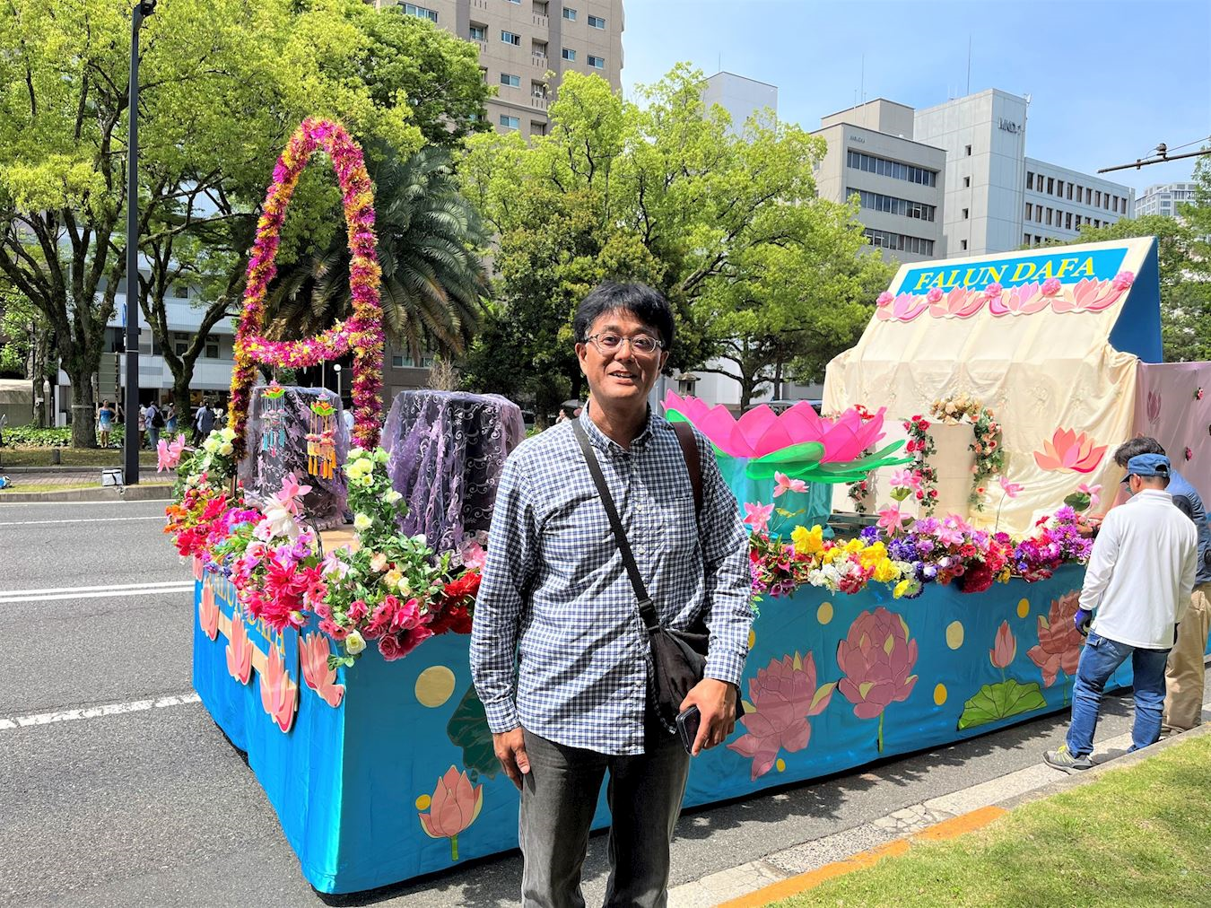因今年五月广岛峰会召开,为期两天的第四十六届广岛鲜花节打破了黄金周期间举办的惯例,延迟到了六月。开幕的当天有六十八万期待已久的海内外游客慕名而来,共有九十个团体的五千六百多人参加了第一天的游行表演,场面盛大、热闹非凡。广岛RCC电视台现场直播报导,晚间又进行了重播。