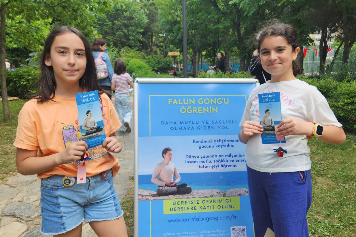 今年十岁的凱文·艾登(Kavin Aydın)和九岁的阿兹拉·泽伊内普·阿尔斯兰(Azra Zeynep Arslan)也学炼了法轮功。艾登说:“我学功时,感到很放松。炼功音乐非常好听,我还想再炼。”