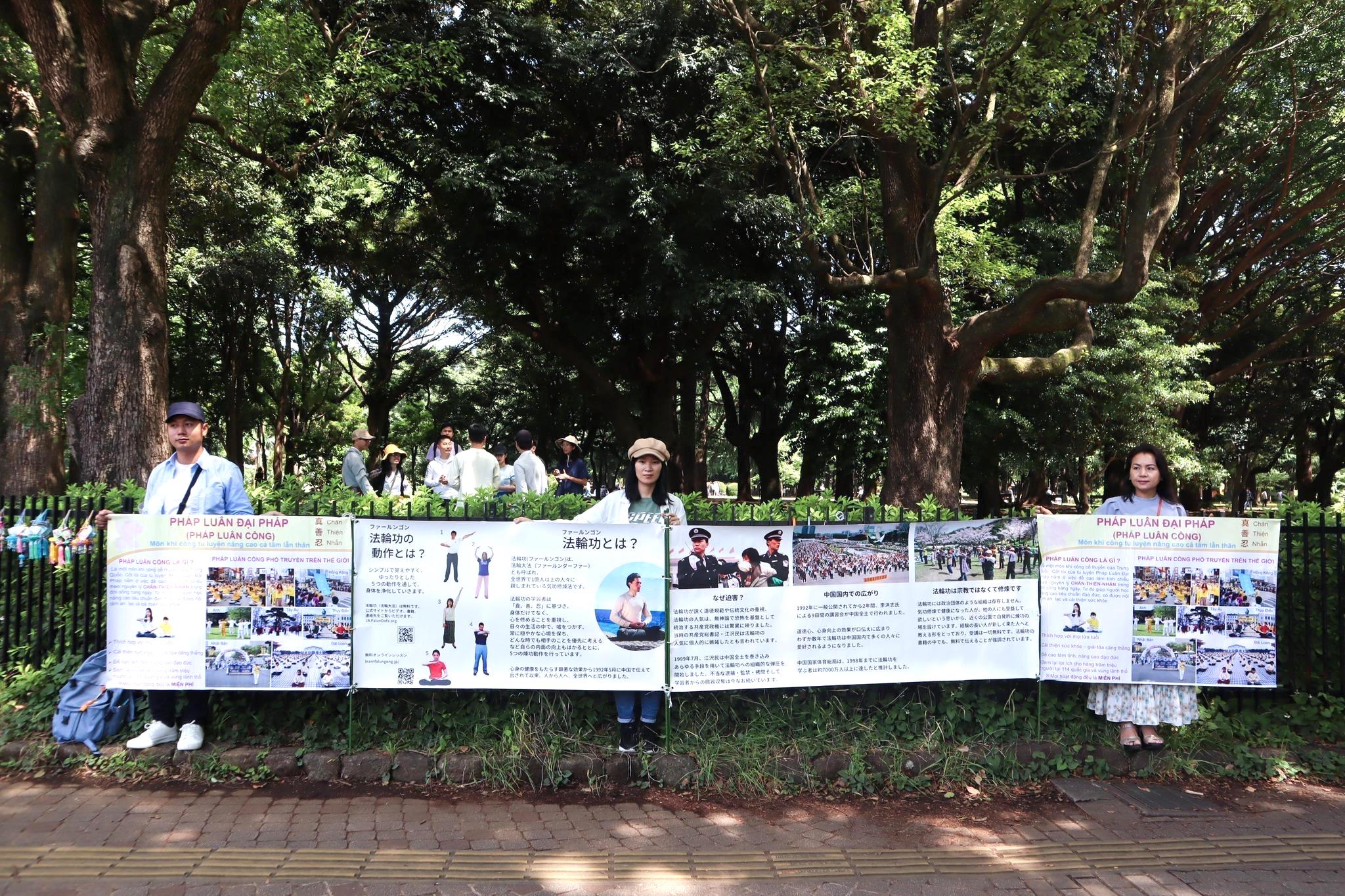 ![]() 图1:法轮功学员打出日语和越南语的法轮功简介展板,方便人们了解法轮大法。 |
