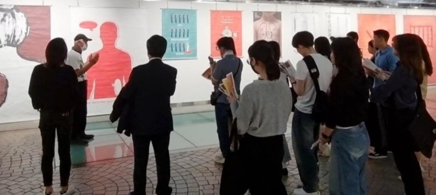 ![]() 图1~5:“制止中共活摘器官海报展”于二零二三年五月二十一日至二十七日,在首尔地铁美术馆举行。每天都有许多当地人和游客前来参观。他们仔细地观看作品,了解到中共活摘器官真相及中国的人权现状。 |
