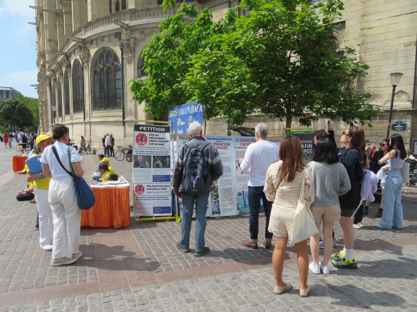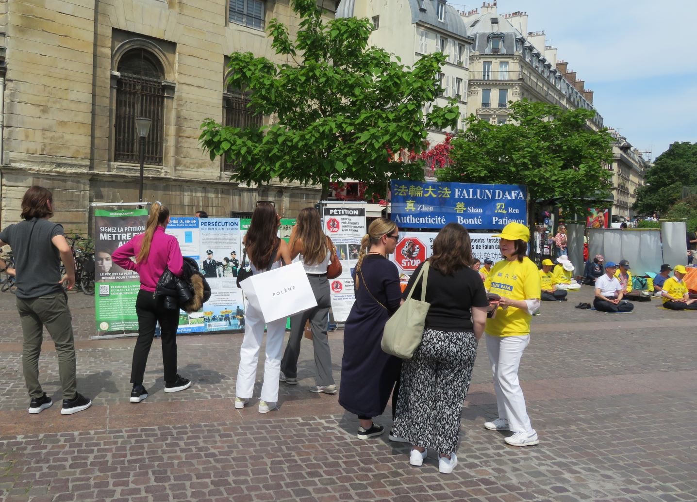 ![]() 图1:二零二三年五月二十七日下午,法轮功学员在巴黎一区的夏特雷(Châtelet)街区进行了炼功、讲真相和征签反迫害的活动。 |