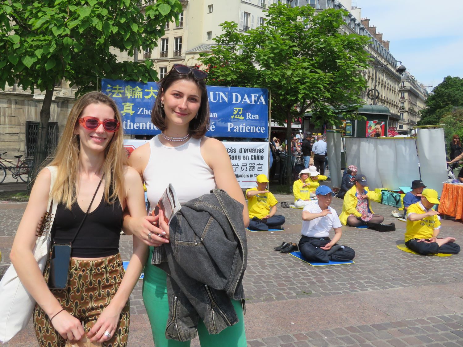 ![]() 图6:阿梅丽·滨诺(Amélie Pinau,右)和朋友经过经过夏特雷,看到法轮功学员的炼功场面,被吸引。她说:“法轮功看上去很舒缓。” |