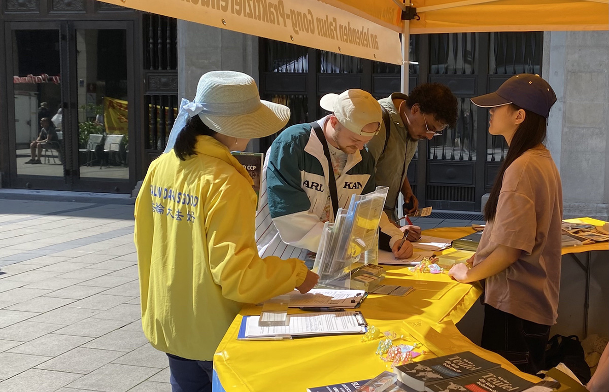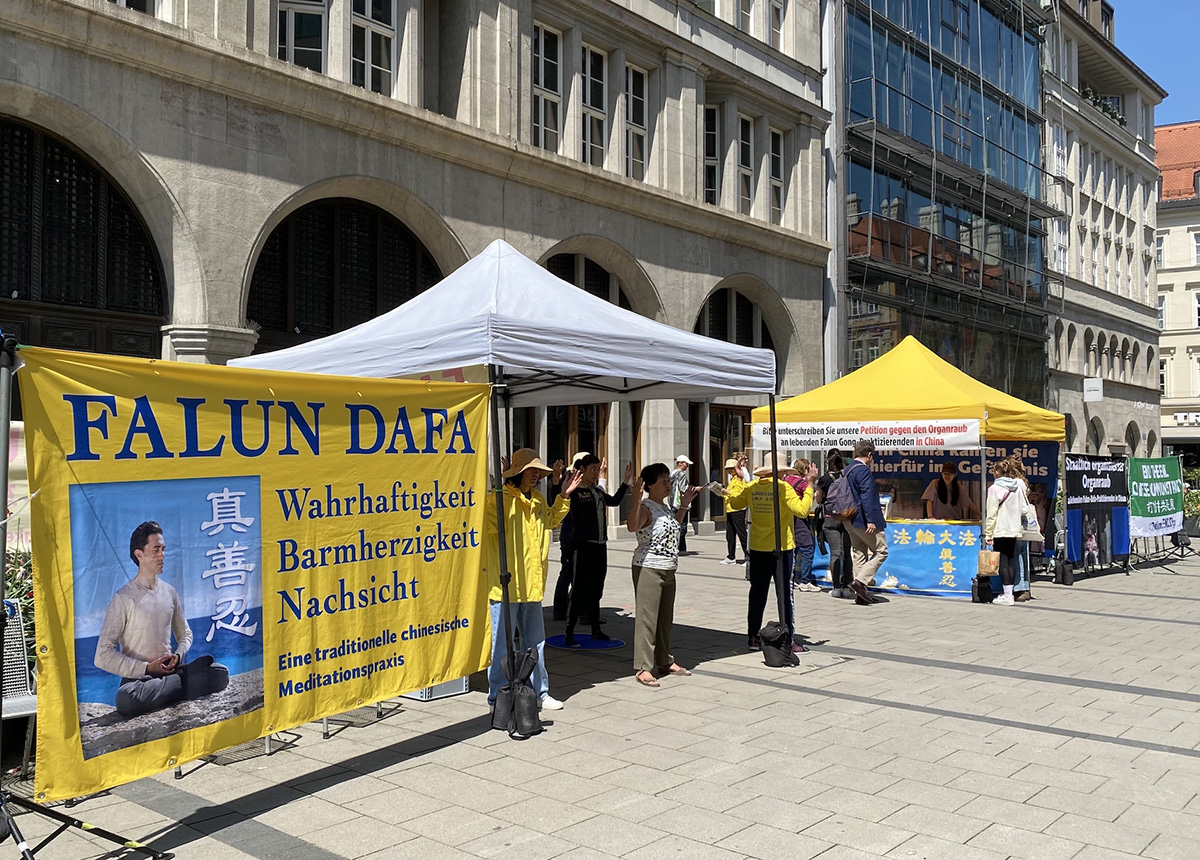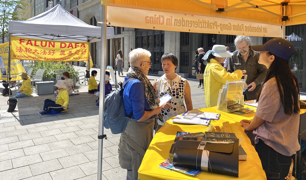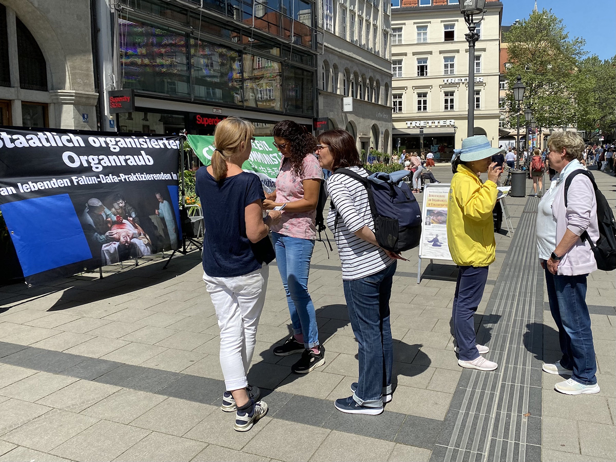 ![]() 图1:二零二三年五月二十七日,德国法轮功学员在慕尼黑市内步行街举办活动,展示法轮功的美好,揭露中共迫害及活摘法轮功学员器官的罪恶。 |