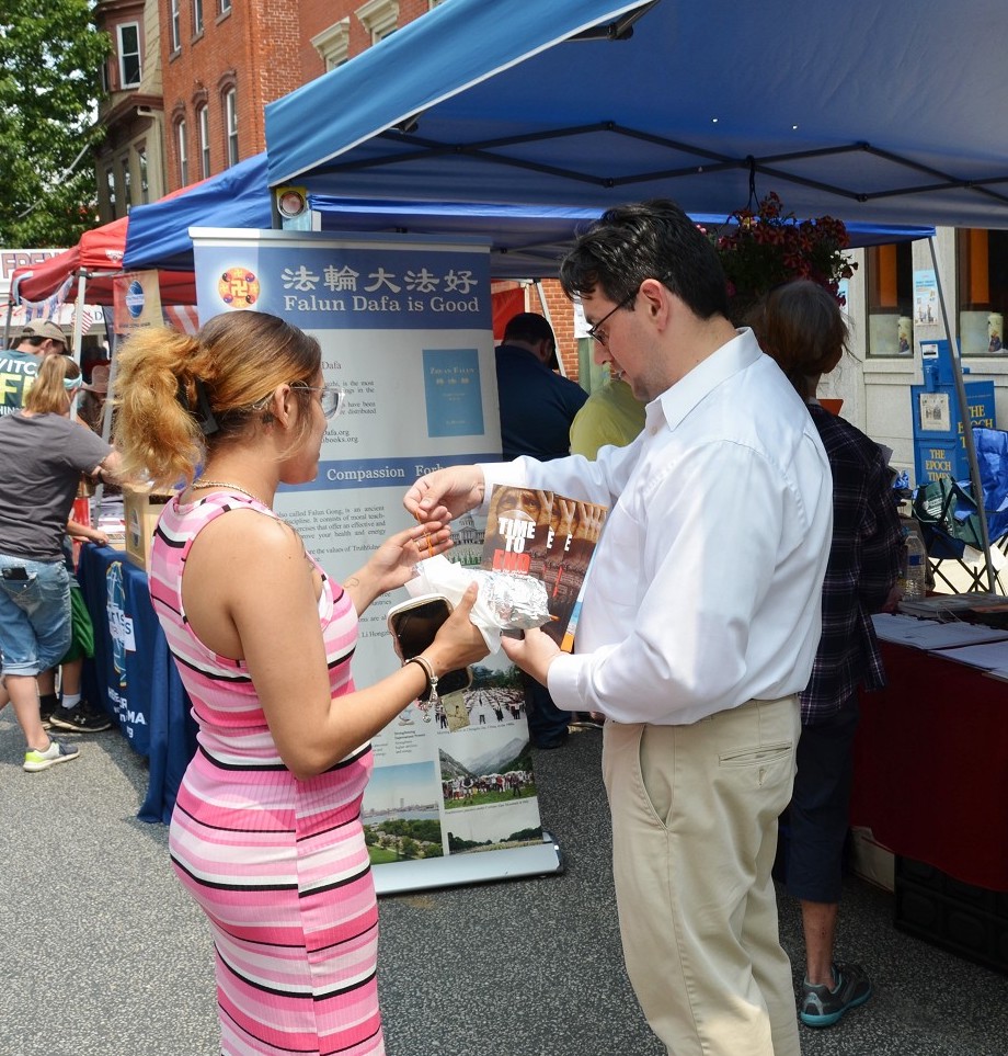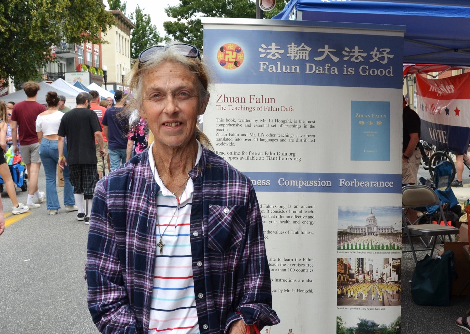 销售汽车零件的莱斯利·罗德(Leslie Roeder)好奇地来到法轮功学员的展位后,第一次了解到法轮功。她说:“非常有趣,我迫不及待地想回家看这些资料,看起来真的很棒。”