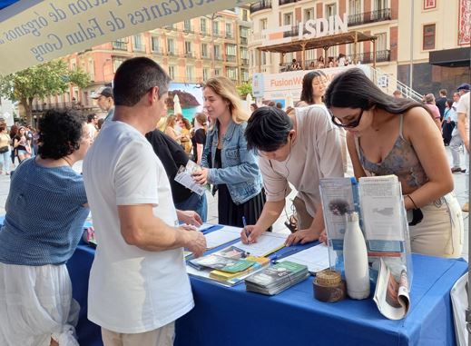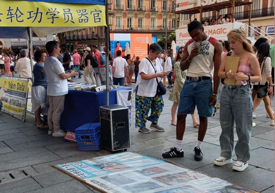 【明慧网二零二三年六月二十日】二零二三年六月十七日,马德里法轮功学员来到市中心最繁华的卡约尔(Callao)广场举办讲真相及弘法活动。许多人在得知中共活摘器官的罪恶行径后,纷纷来到征签桌前签名支持法轮功学员反迫害,谴责中共暴行。