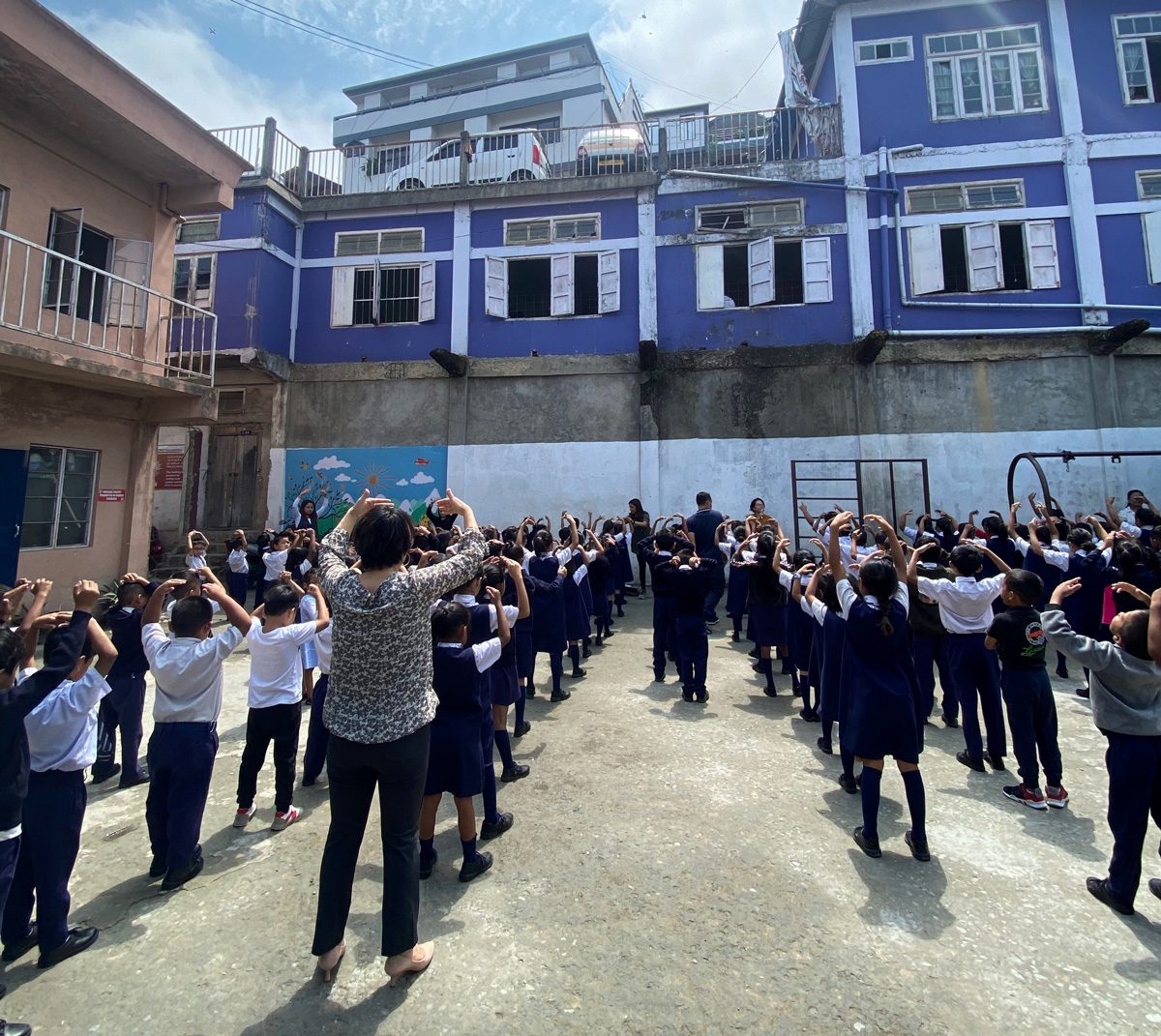 随后,附近的政府占马里中学(Government Chanmari Middle School)的工作人员也邀请尼哈来学校举办法轮大法弘法班。尼哈向学校的师生分发了大法传单。