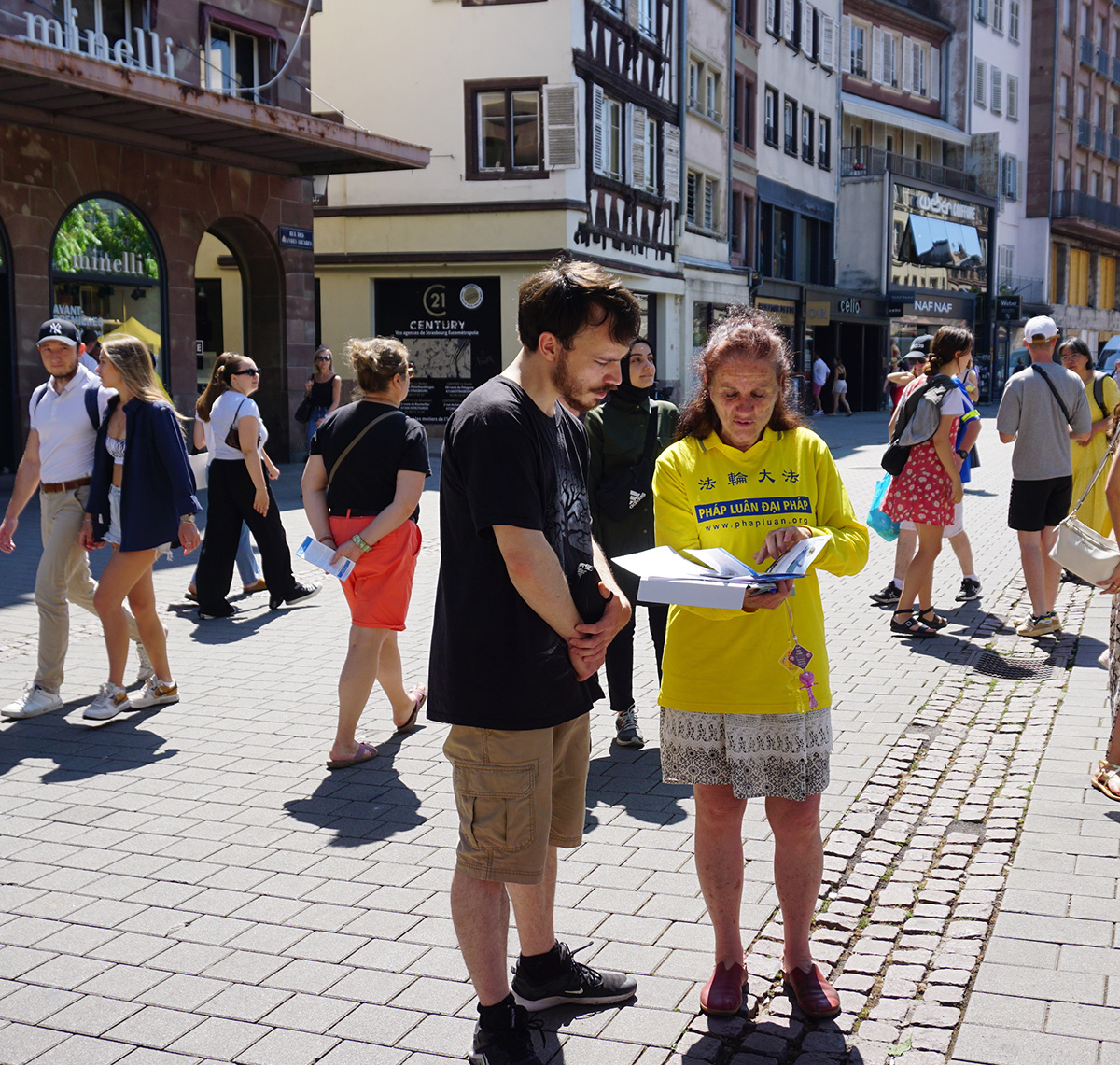 二零二三年六月二十四日,由来自欧盟十几个国家的法轮功学员借此机会,在法国东北部的斯特拉斯堡市集会,向民众揭露中共迫害法轮功的邪恶酷刑,和法轮功学员反迫害的真相。位于法国东北部的斯特拉斯堡市,因其是欧盟委员会所在地而成为法国重镇。