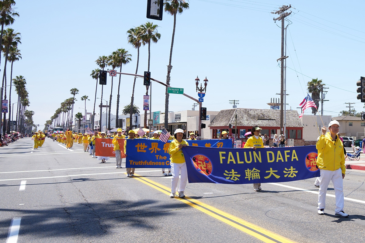 海滨市居民戴夫(Dave)和太太都表示很喜欢法轮功的队伍。戴夫说:“他们非常美,服装和表演都非常好,花车也美极了,传递的信息也非常好。他们(法轮功学员)来到这里,支持社区活动,把美好的东西带到这里,让我感到很高兴。”