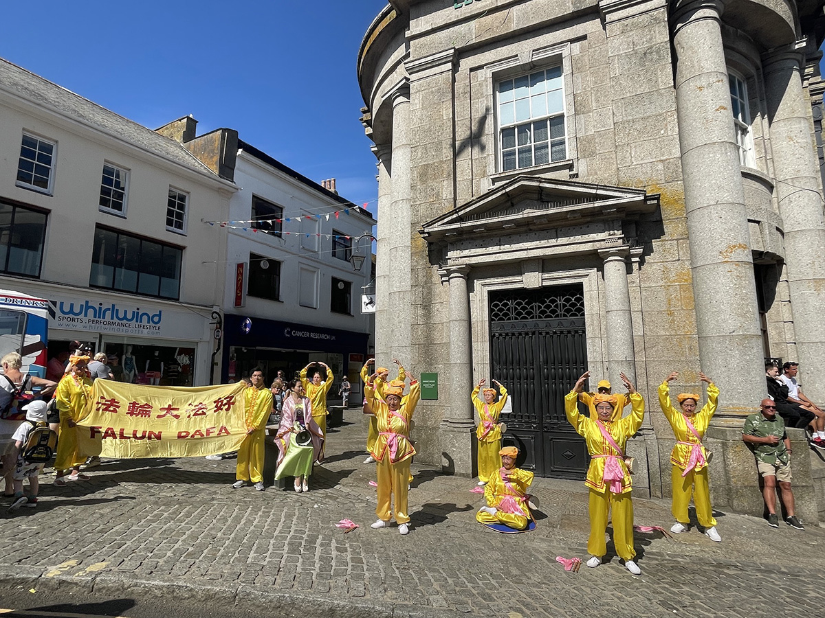 英国法轮功学员的腰鼓队曾经在二零零八年和二零零九年两次参加彭赞斯的游行活动,一度成为当地新闻热点。阔别十四年后,部份学员又到此地,依旧是阳光灿烂,海景绮丽,游人如织。