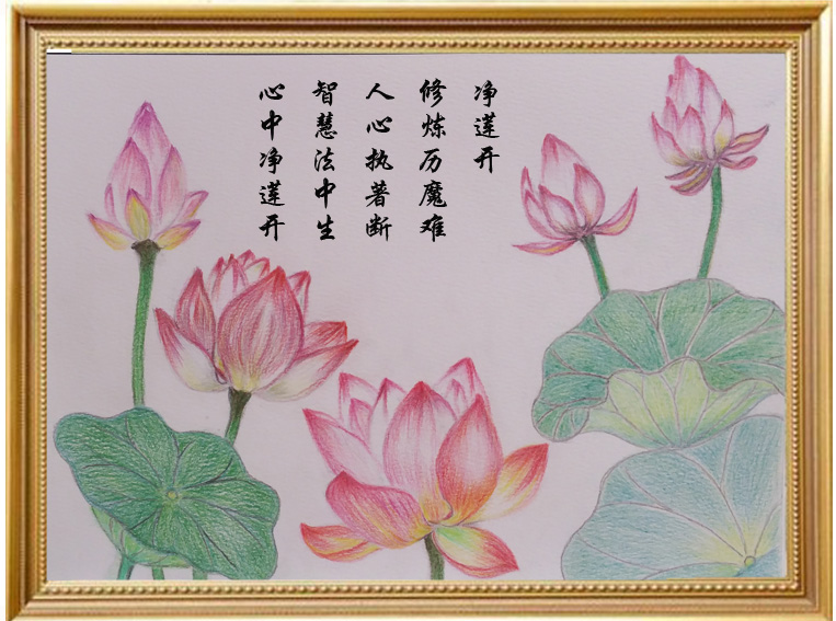 大法不仅使我身心受益,还使我开智开慧。从小我就很喜欢荷花,这不仅是因为好看,更因为荷花象征着圣洁,具有出淤泥而不染的高贵品质。我很愿意看好看的荷花图片,梦想着自己有一天也能画出美丽的荷花。偶尔画画,也只会画几个简单的花瓣,根本就不知道荷花该怎么画。