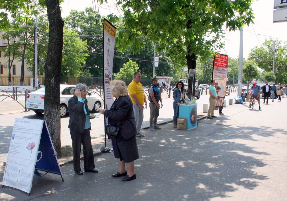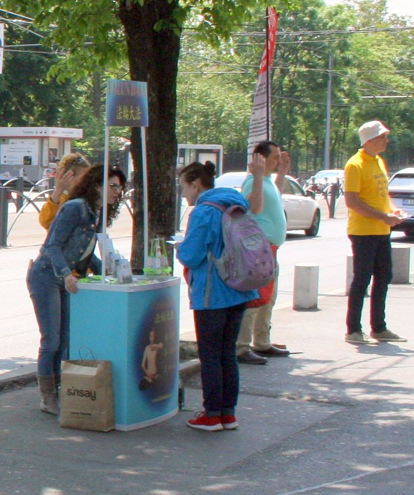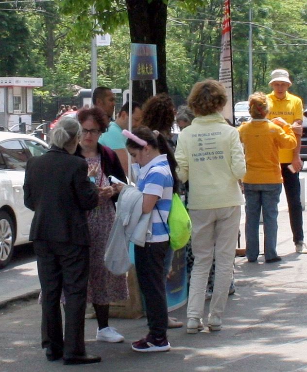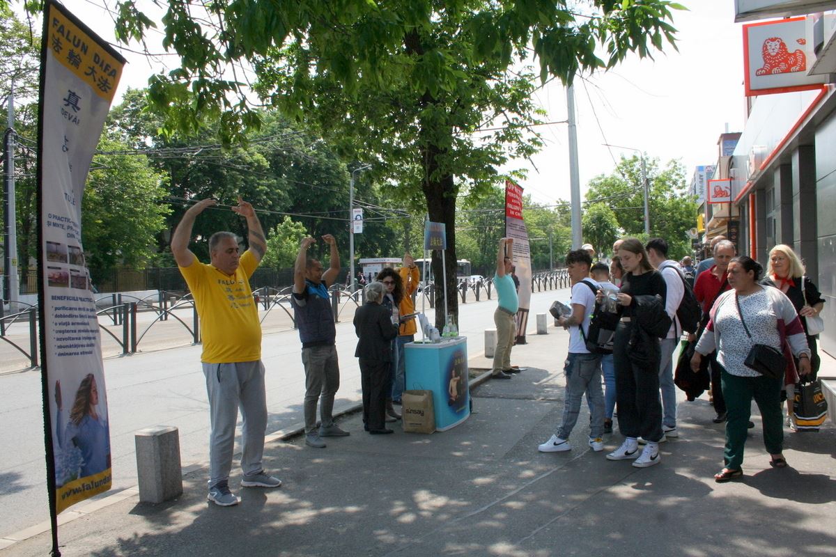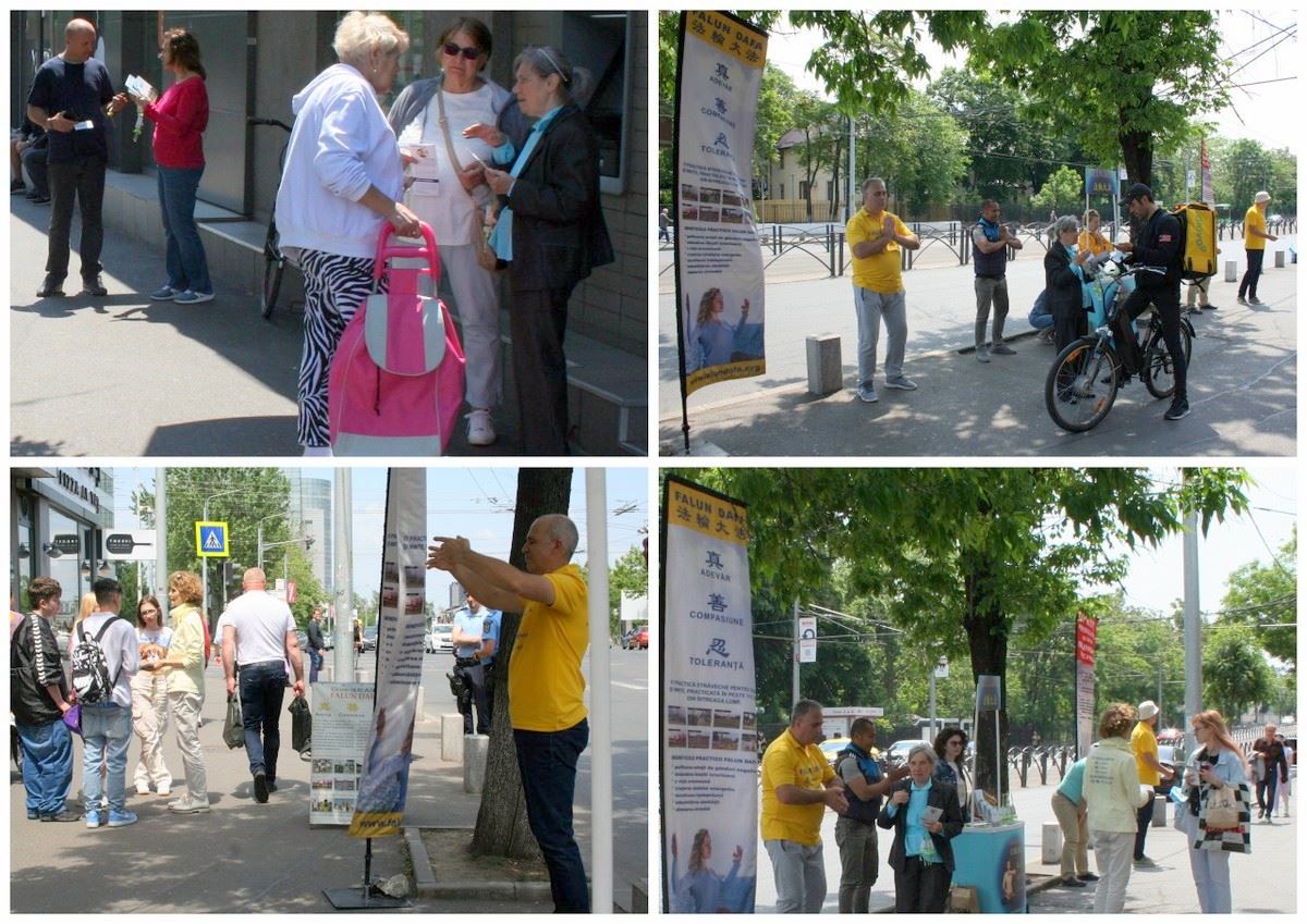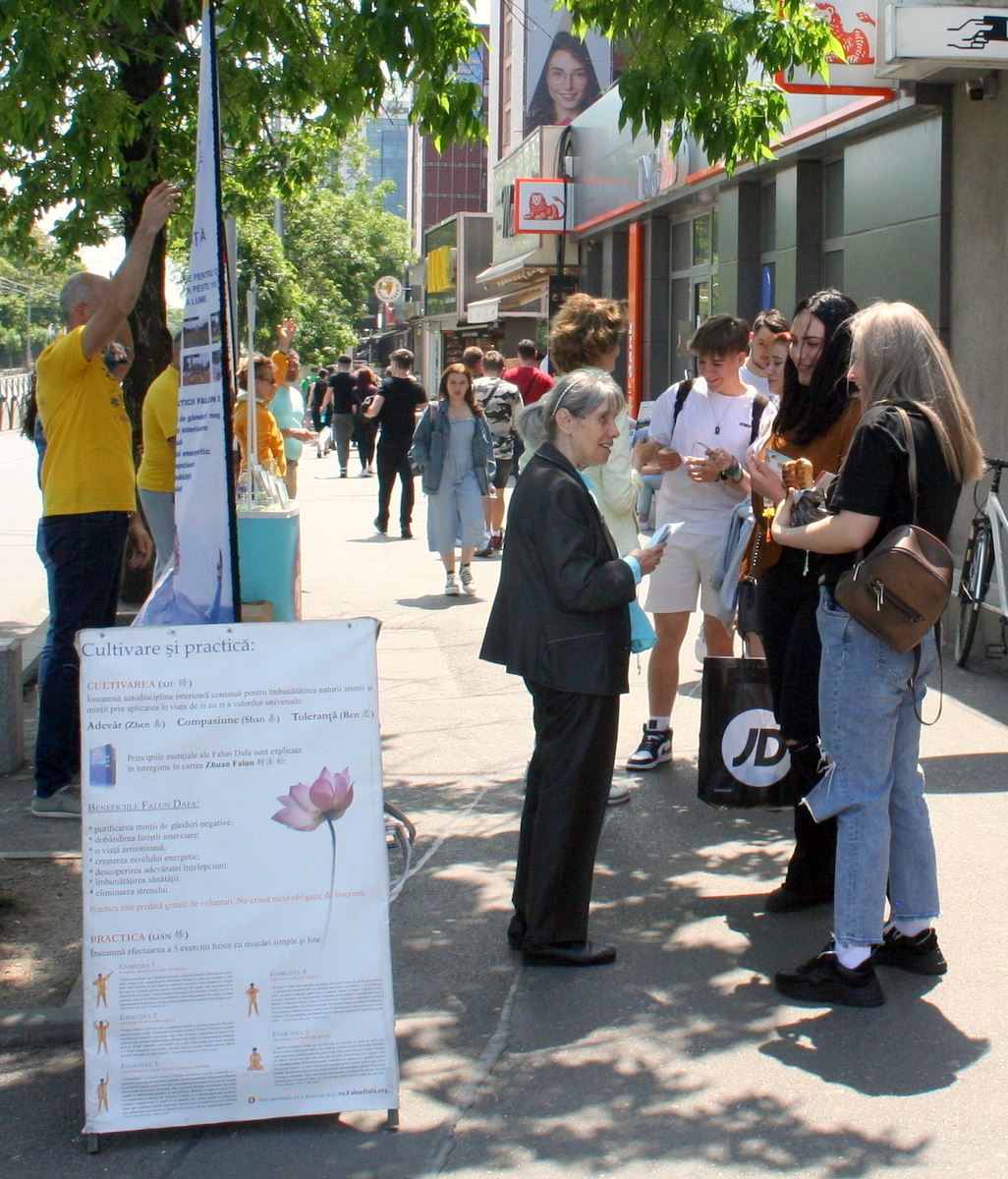 当天,来自各行各业的布加勒斯特民众在真相展板前驻足,与学员们交谈,他们不但了解了很多关于法轮大法的信息,更有不少人表达了对法轮大法和真、善、忍价值的支持,并谴责中共针对法轮功持续至今长达二十四年的迫害。