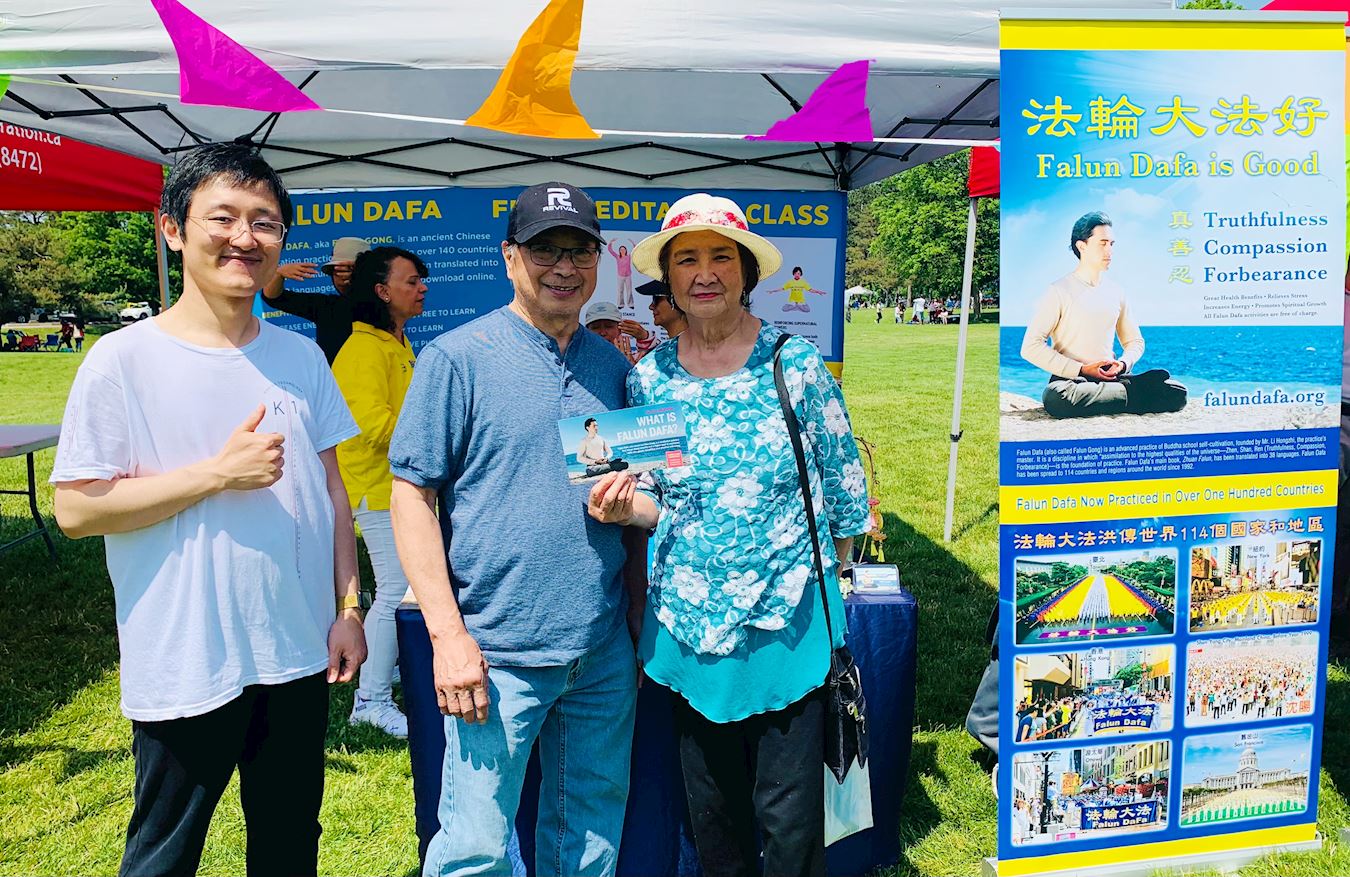 六月的春日阳光正好,微风不燥,法轮功学员也应主办方邀请,在绿色的草坪上搭起了展位,参加了这次文化节活动,前来学功法的民众非常受益和赞赏给社区带来美好。