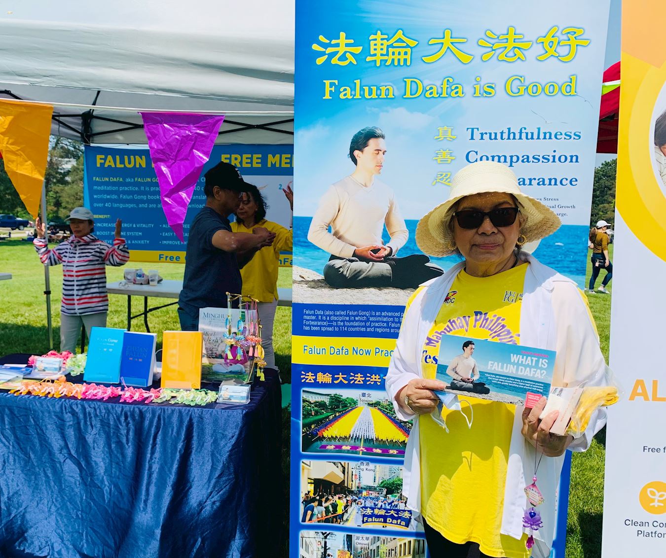 艾格尼丝·米兰达(Agnes Miranda)是菲律宾独立日委员会的主席,同时,她还是加拿大世界金融集团创始人、执行副主席。她来到法轮功展位前对学员说,“我之前对法轮功已有所了解,我知道法轮功是一种传统的修炼方式,有益于身心健康。同时,我自己也有每天打坐一小时的习惯。”