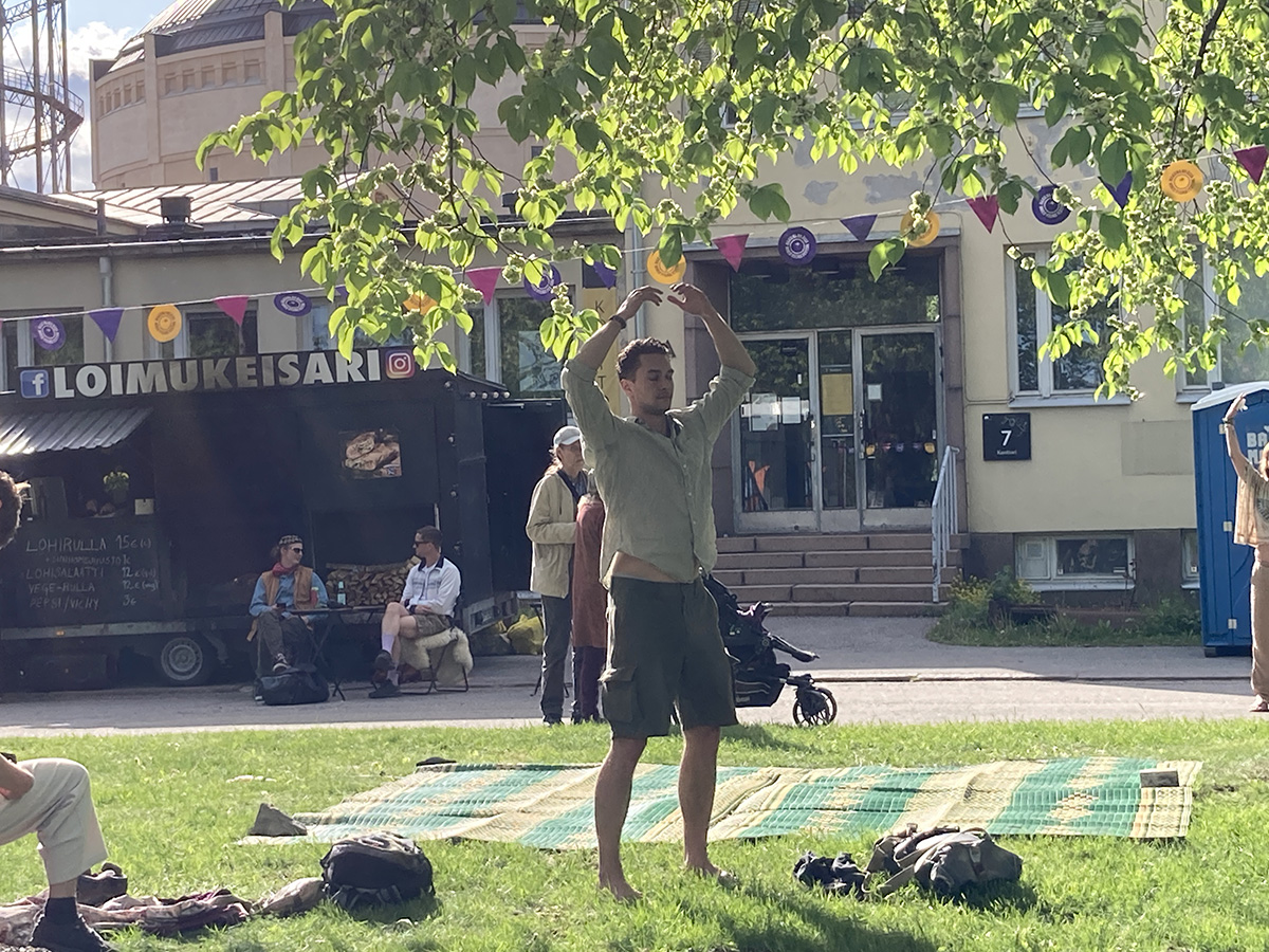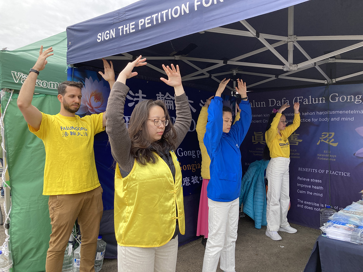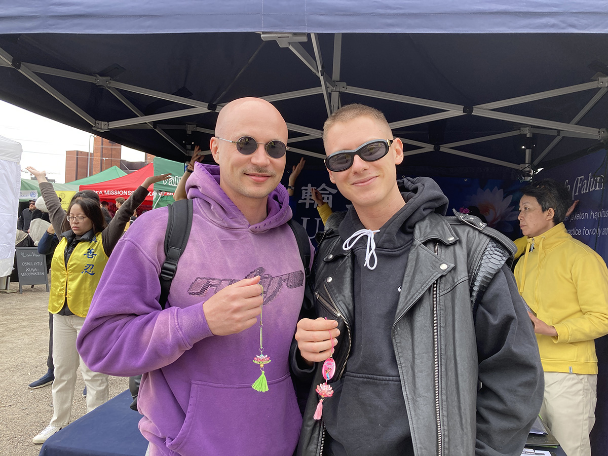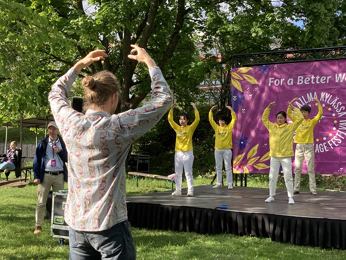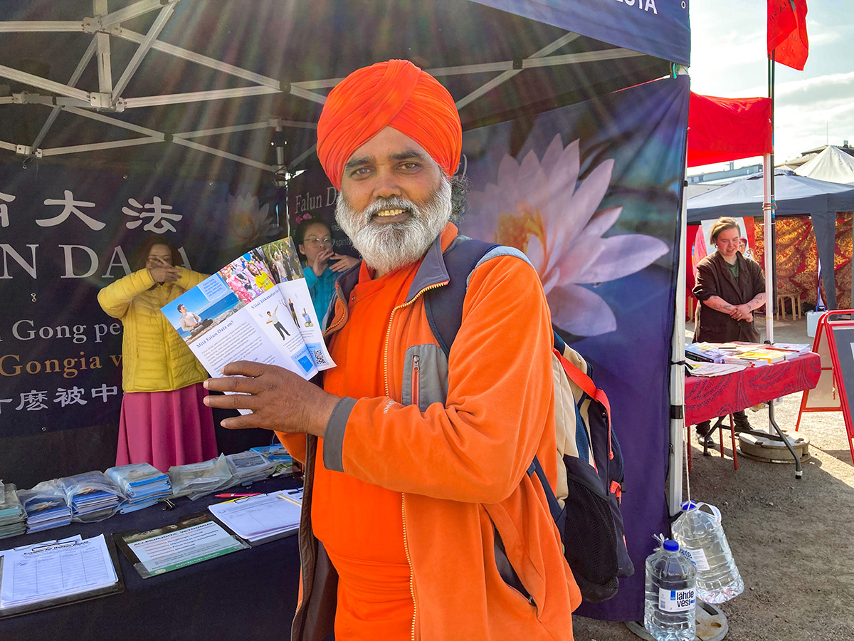 贝尼夫(Bheneffe)曾去过中国,也曾在台湾居住了四年。他说:“昨天真的很高兴在舞台上看到你们的功法展示,真是太精彩了。你们用芬兰语很好的介绍法轮功及炼功动作,太棒了。我知道你们不仅仅在这里搞活动,还知道你们安排了不一样的活动,比如在甘比购物中心附近发传单,在火车站的活动,在公园炼功。”