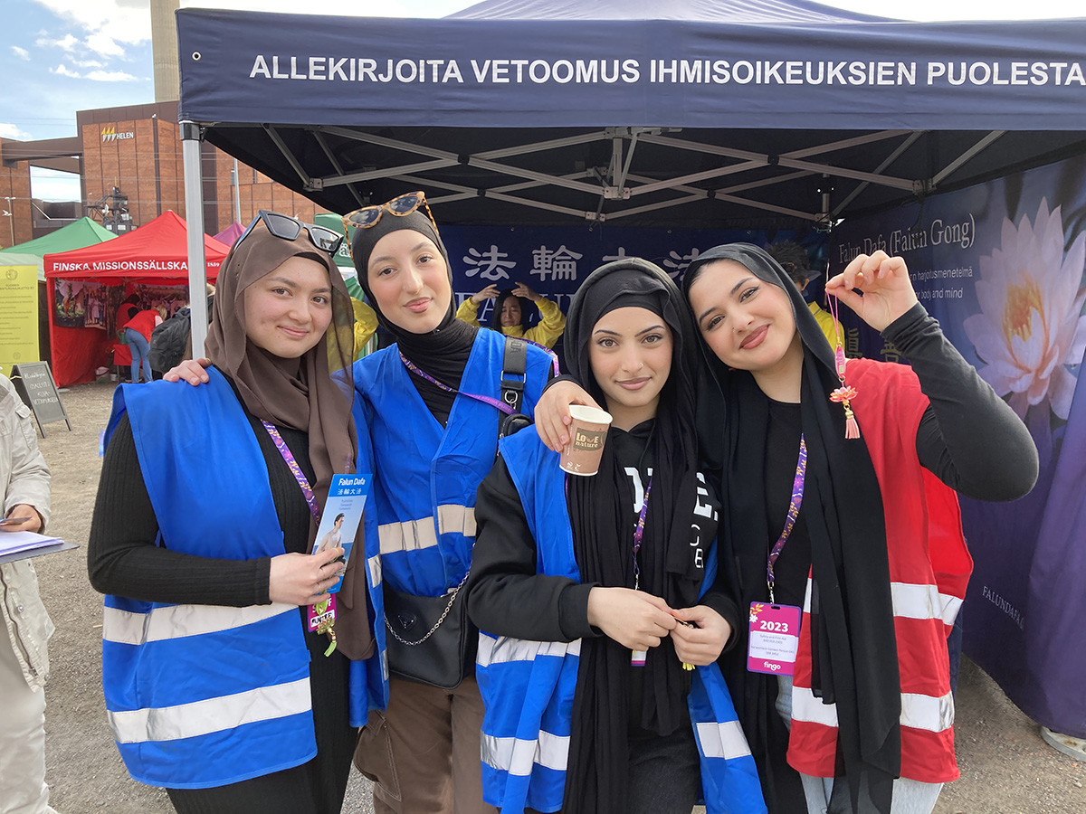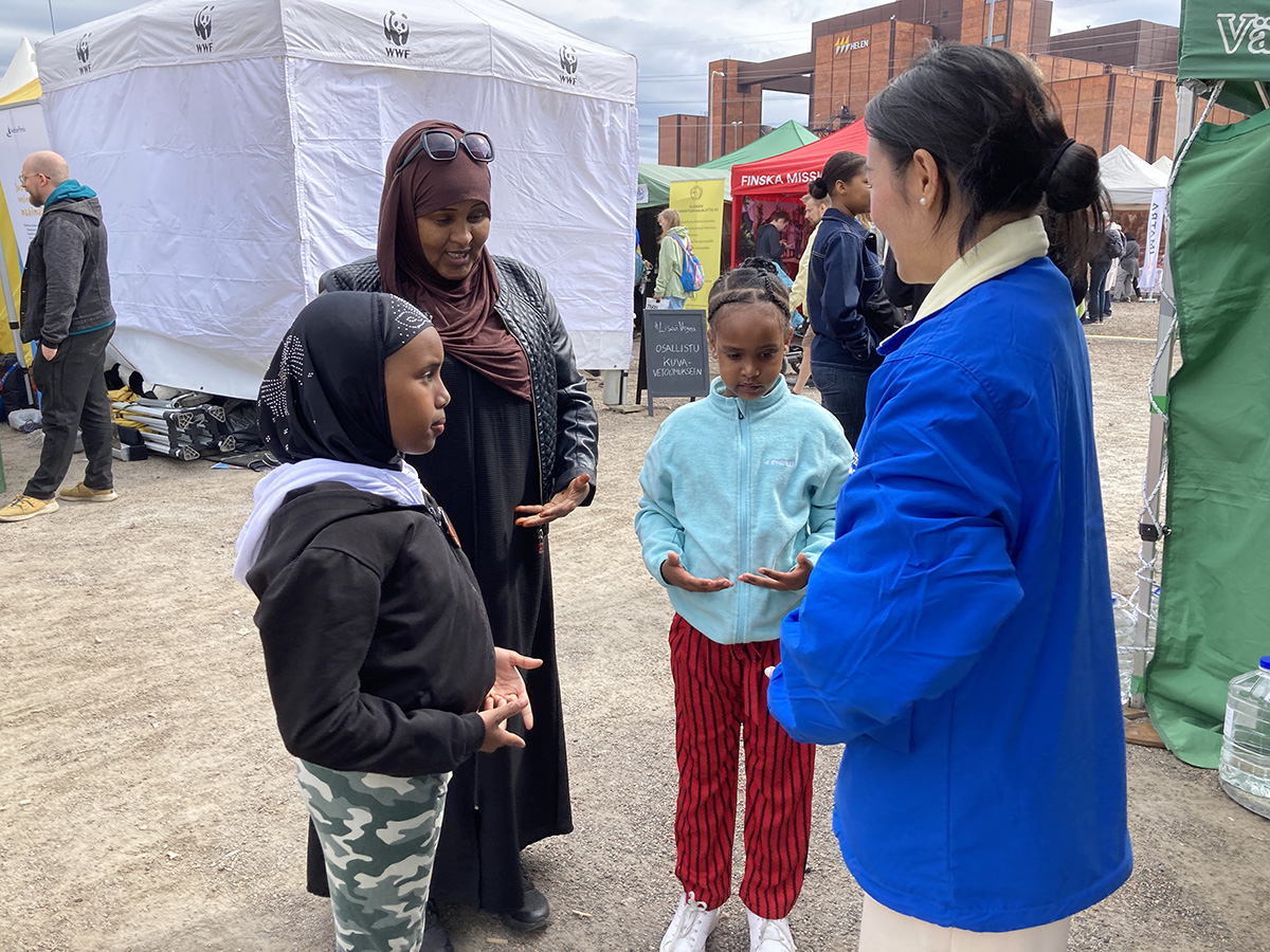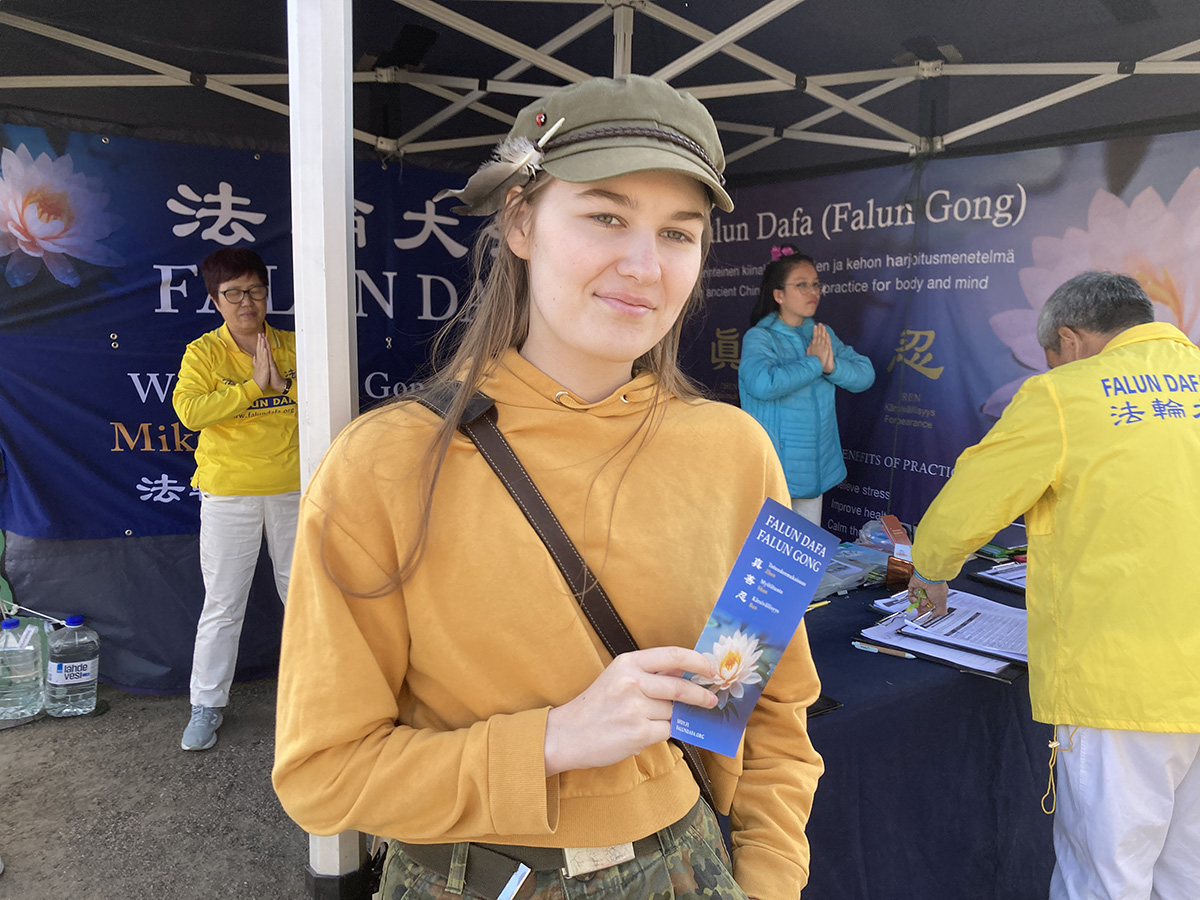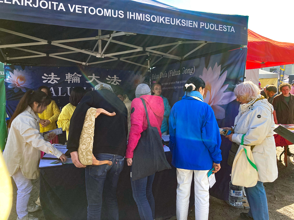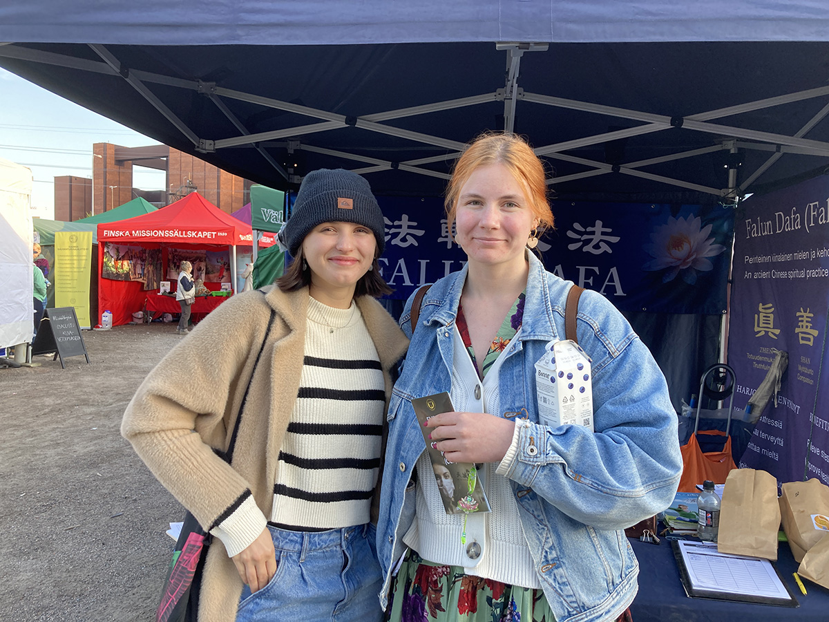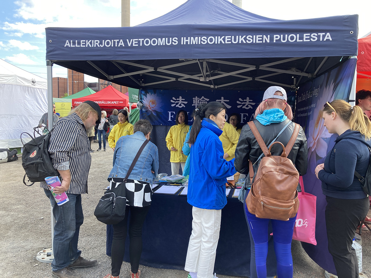芬兰出生的華裔南希(Nancy)对法轮大法的真相点非常好奇,她不断的向学员提出各种问题,包括为什么用这样的方式讲述真相。当了解到法轮功学员遭受中共残酷的迫害,她非常震惊,并愿意在请愿书上签字。并告诉学员:“讲清真相,告诉人们在中国发生的事情,是一件非常重要的事。”她询问是否有其它可以帮助的事情,并高兴地把二零二三年刚出版的《明慧》期刊带回家阅读。她还告诉学员说:“修炼法轮功的外国人用中文与她交谈,这让自己更有动力去学好中文。”