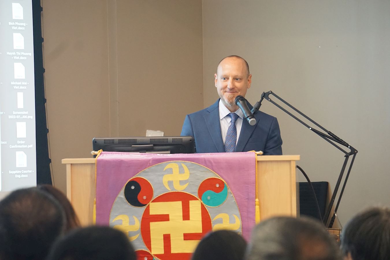 来自乔州的麦先生谈到,自己看到一位七十三岁越南学员,精神抖擞地连续三天向人们介绍法轮大法而感动,从而开始修炼。
