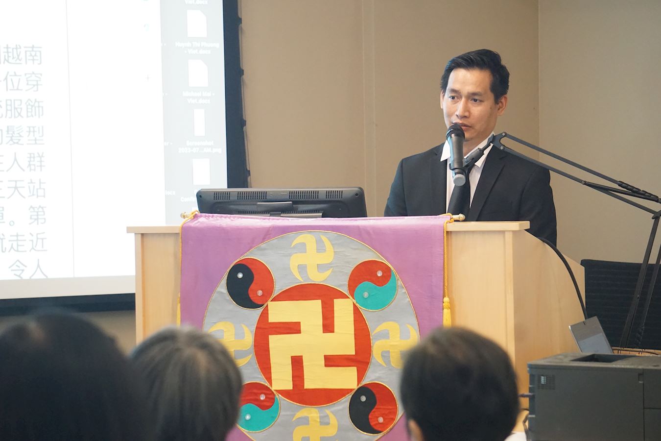 他交流到:“二零一九年,我参加了一个越南教会的秋季节日。一位身着越南传统服饰的女士,她连续三天站在我的摊位旁边发传单,当我得知她已经七十三岁,我忍不住问她是如何在这个年纪,还能保持如此优雅和精力充沛的。她的回答简单而深刻:她修炼法轮功。后来,麦先生在这位法轮功学员的帮助下,也开始修炼法轮大法。