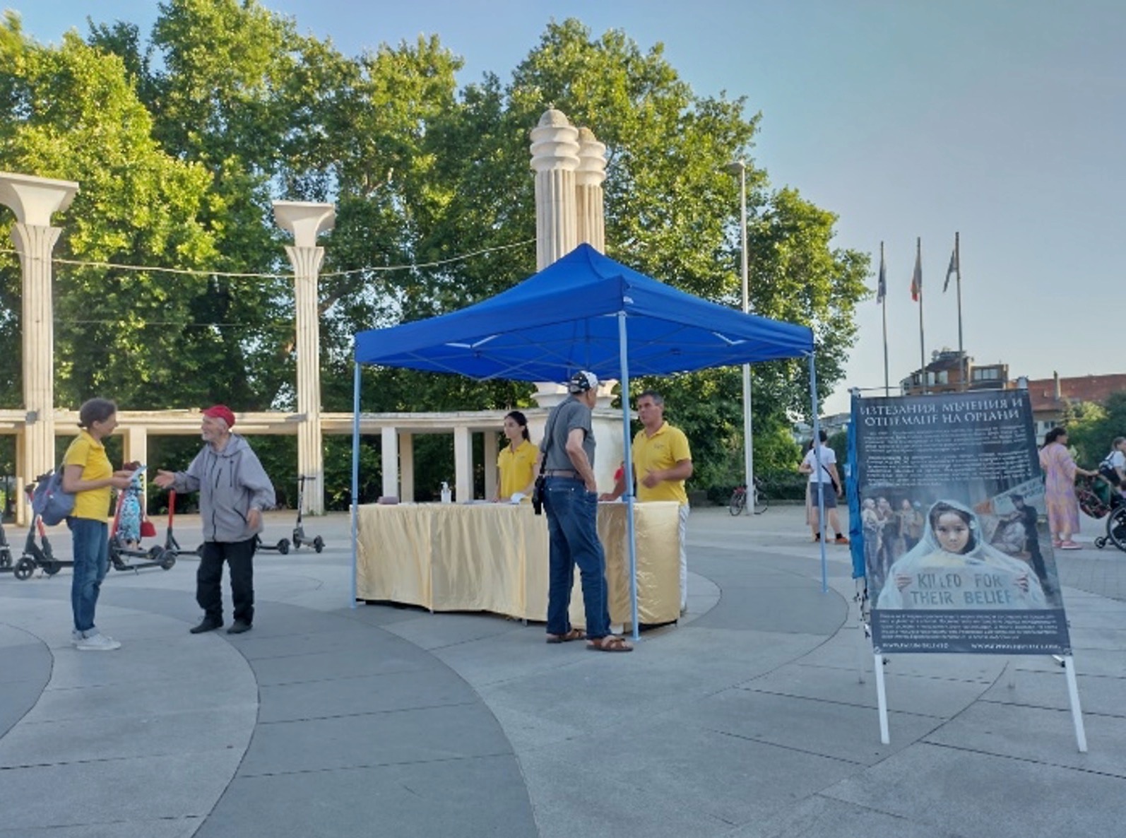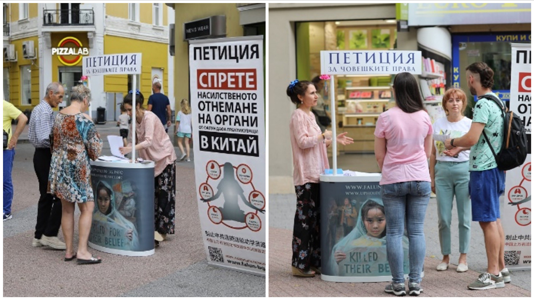 活动中有两份请愿书:一份是终结中共(End CCP)请愿书,另一份是由保加利亚学员发起的呼吁保加利亚政府和人民不参与中共活摘器官罪行的请愿书。不少路人在两份请愿书上都签下了自己的名字,以声援中国法轮功学员。