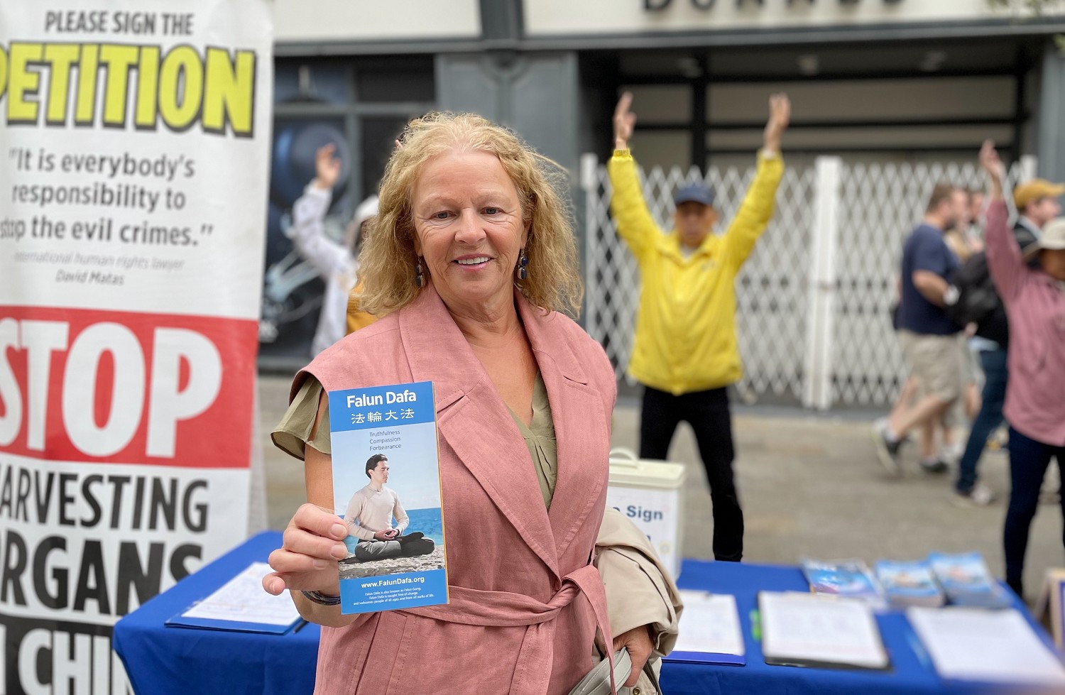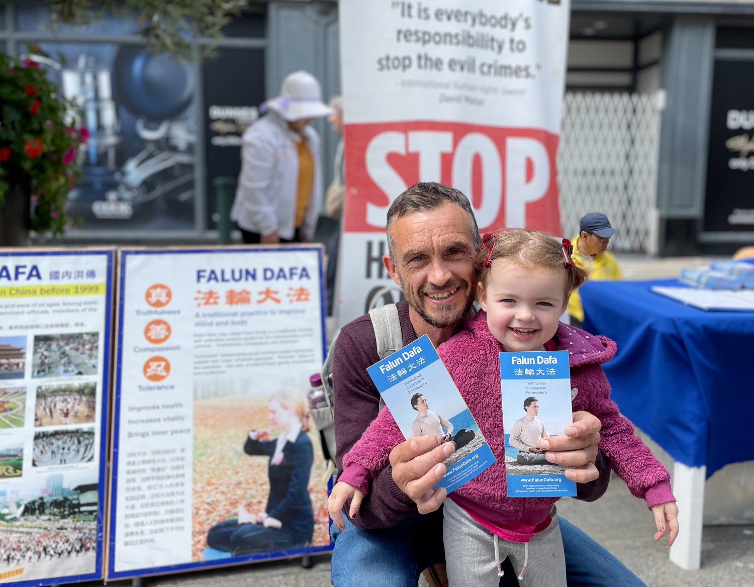 罗格(Roger)是第一次听说法轮功,学员向他介绍法轮功信仰的是真、善、忍原则,罗格认同地说,“这几个字至关重要”,他举例说,“‘真’很重要,政府就需要多点真,‘善’当然也很棒。”