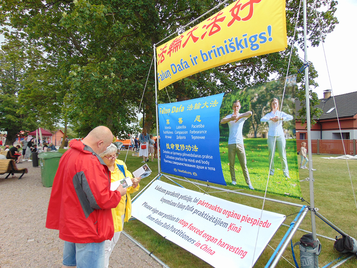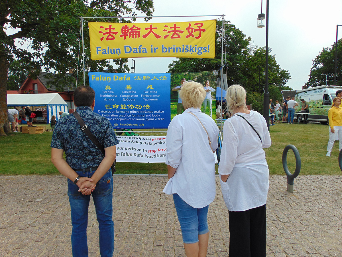 不少民众对法轮功很感兴趣,学员告诉他们可以参加每周日上午九点在帕尔文塔(Parventa)的集体炼功,炼功地点靠近儿童公园范塔齐亚(Fantazija)。