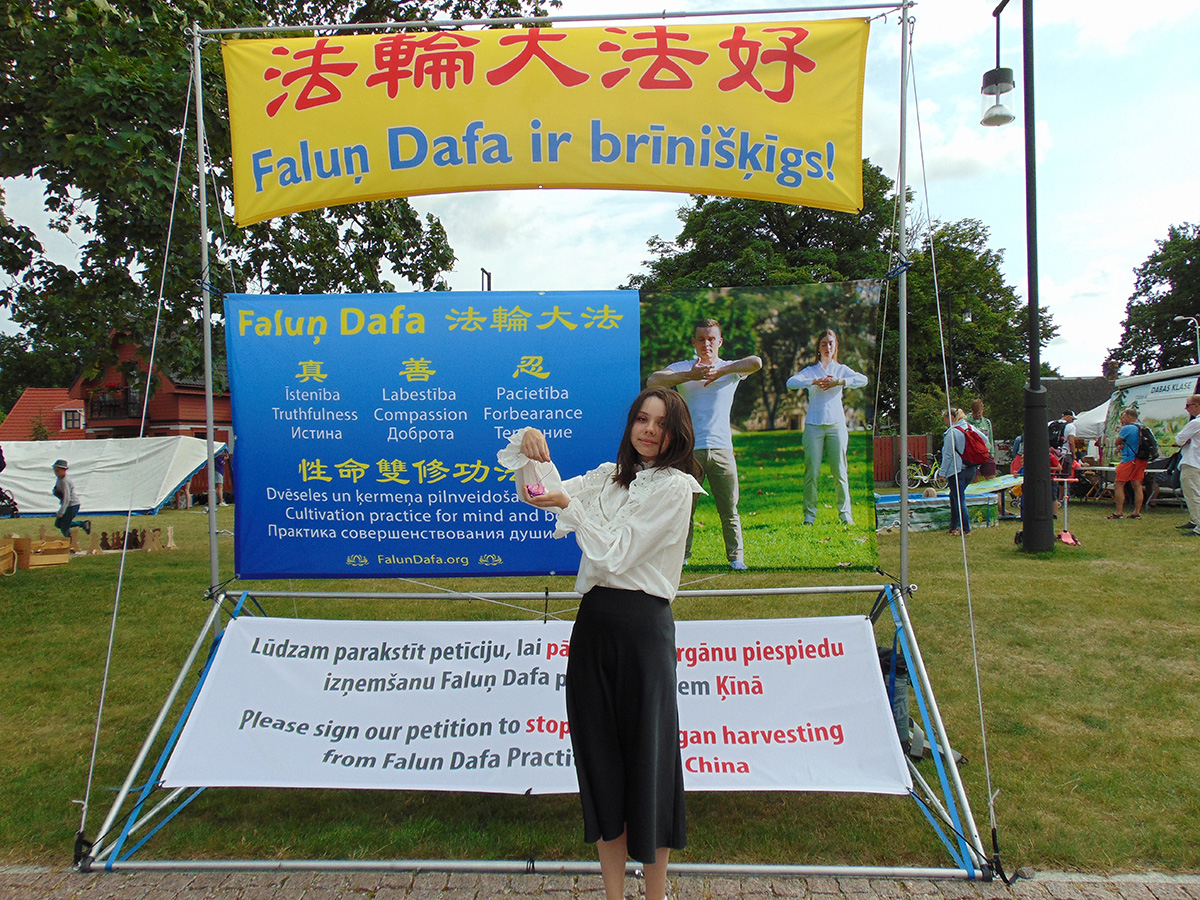 离开展位前,她希望能读一读《转法轮》这本书,并观看教功录像,这样以后就可以和女儿一起在文茨皮尔斯炼法轮大法了。母女俩衷心感谢法轮功学员,并祝愿他们继续曝光和揭露邪恶,她们对学员说:“祝你好运!下次再见!”