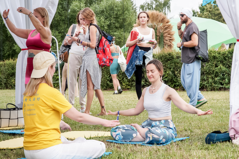 化妆师迪娜(Dina)在业余时间练习瑜伽,也研究打坐和冥想,希望在工作时能更加“干净”和“精力充沛”。在当天的活动中,她发现法轮大法对恢复体力非常有帮助。